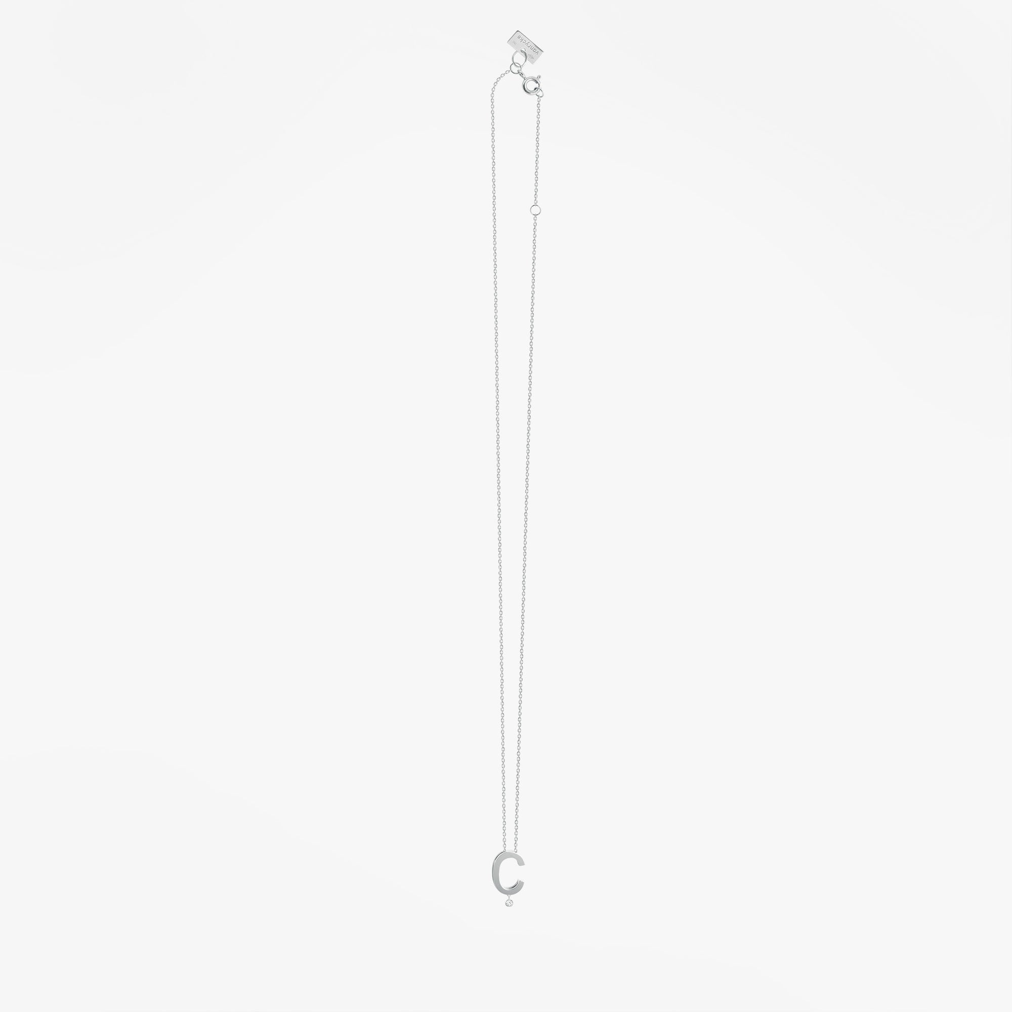 Or blanc 18k et diamantCe collier à porter au quotidien est composé d’une mini lettre qui glisse librement le long d’une fine chaîne diamantée. Choisissez votre initiale et vous aurez un cadeau parfait.