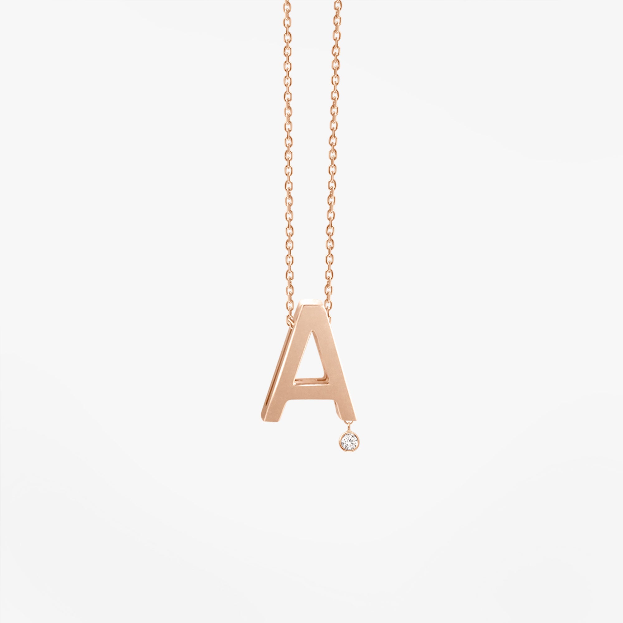 Or rose 18k et diamantCe collier à porter au quotidien est composé d’une mini lettre qui glisse librement le long d’une fine chaîne diamantée. Choisissez votre initiale et vous aurez un cadeau parfait.