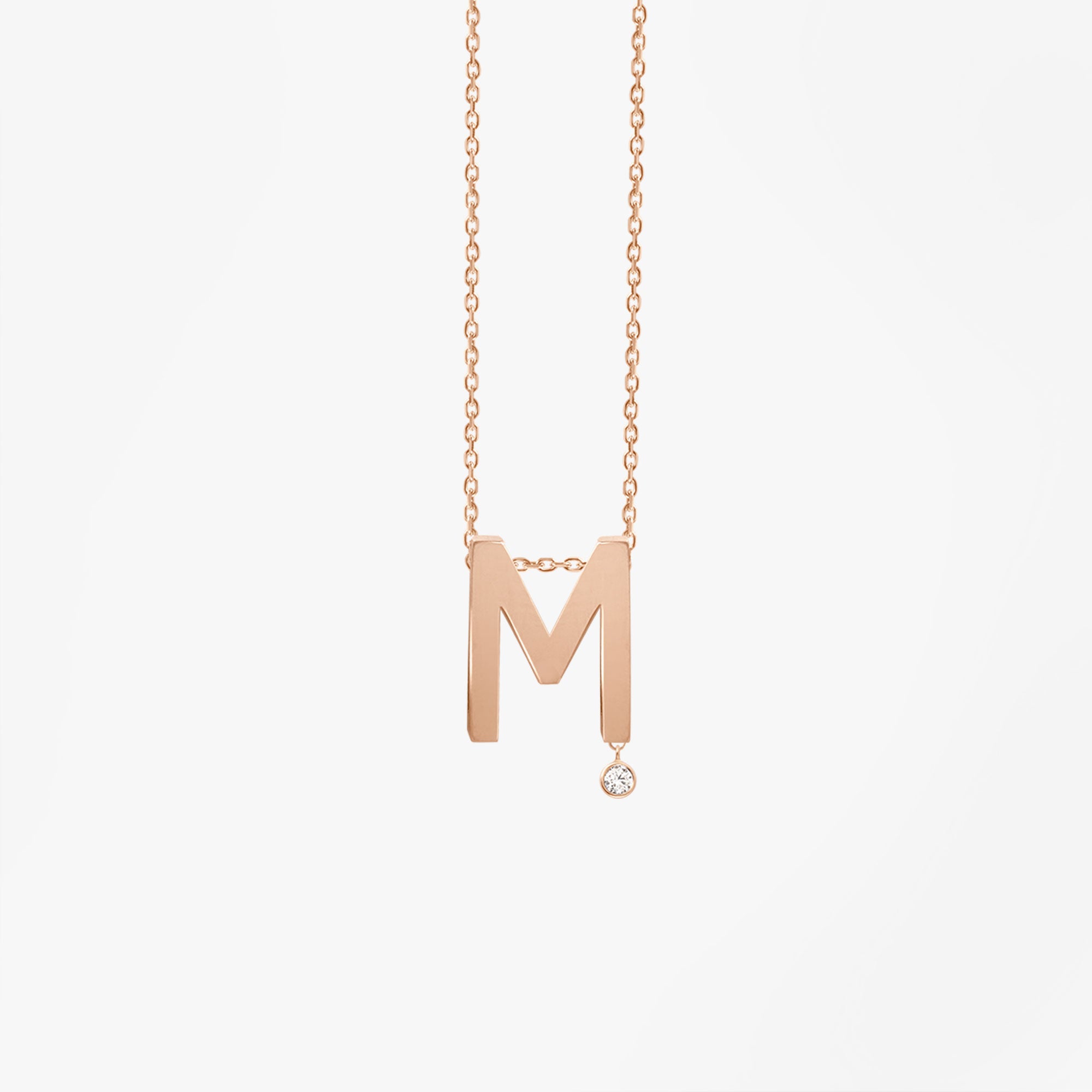 Or rose 18k et diamantCe collier à porter au quotidien est composé d’une mini lettre qui glisse librement le long d’une fine chaîne diamantée. Choisissez votre initiale et vous aurez un cadeau parfait.