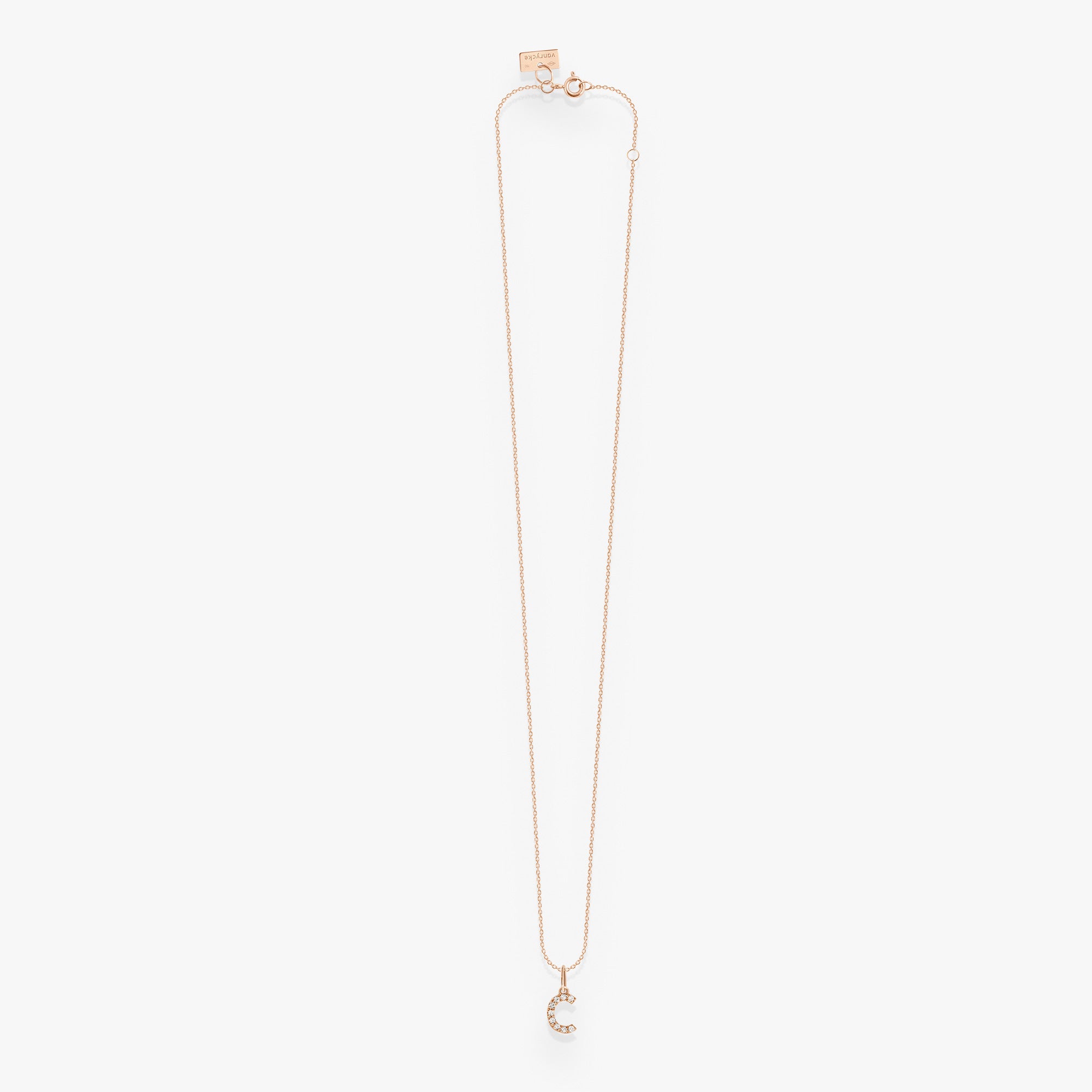 Or rose 18k et diamantsUne mini Initiale pavée de diamants, simple, moderne et terriblement tendance.
