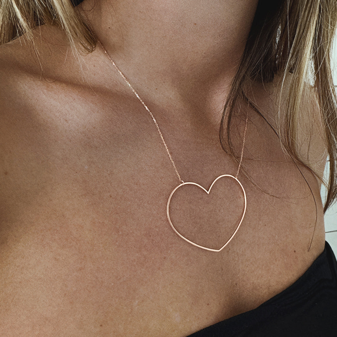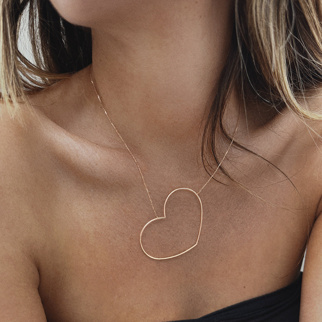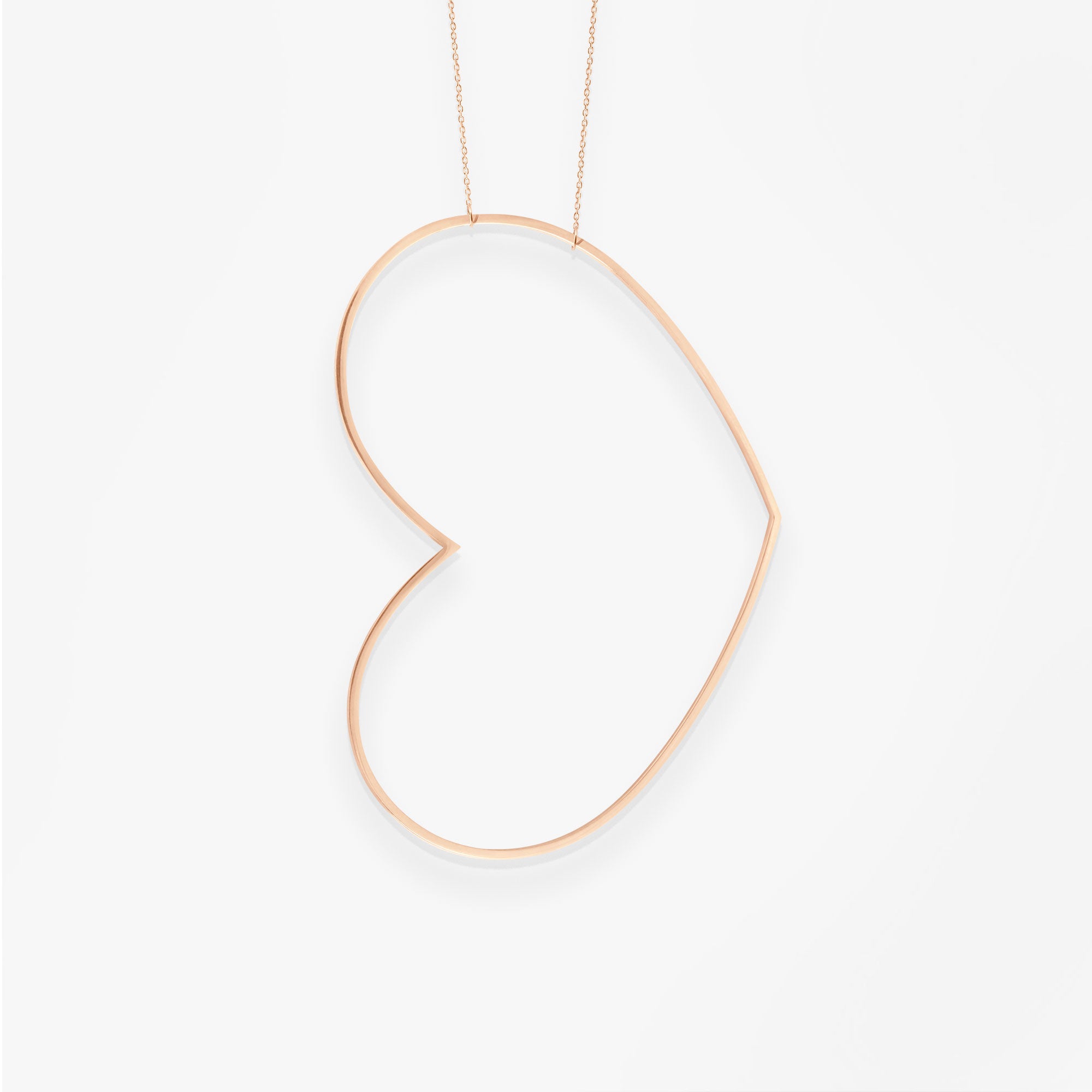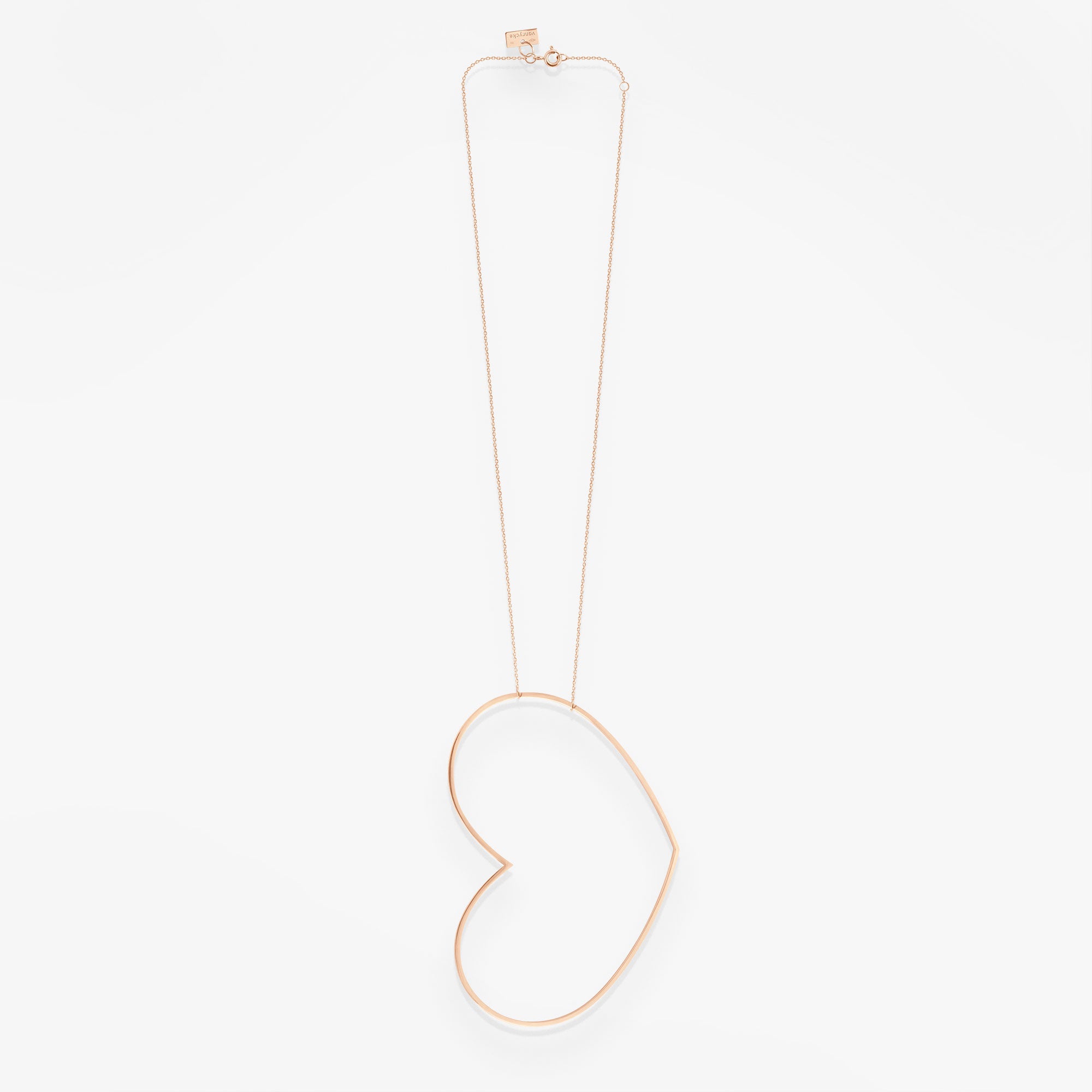 Un symbole d'amour qui fait référence à la fameuse chanson des Rolling Stones. Ce collier exquis, en or rose 18k ,paré d'un cœur XXL mobile se porte de face pour une allure romantique ou de côté pour un look plus rock.