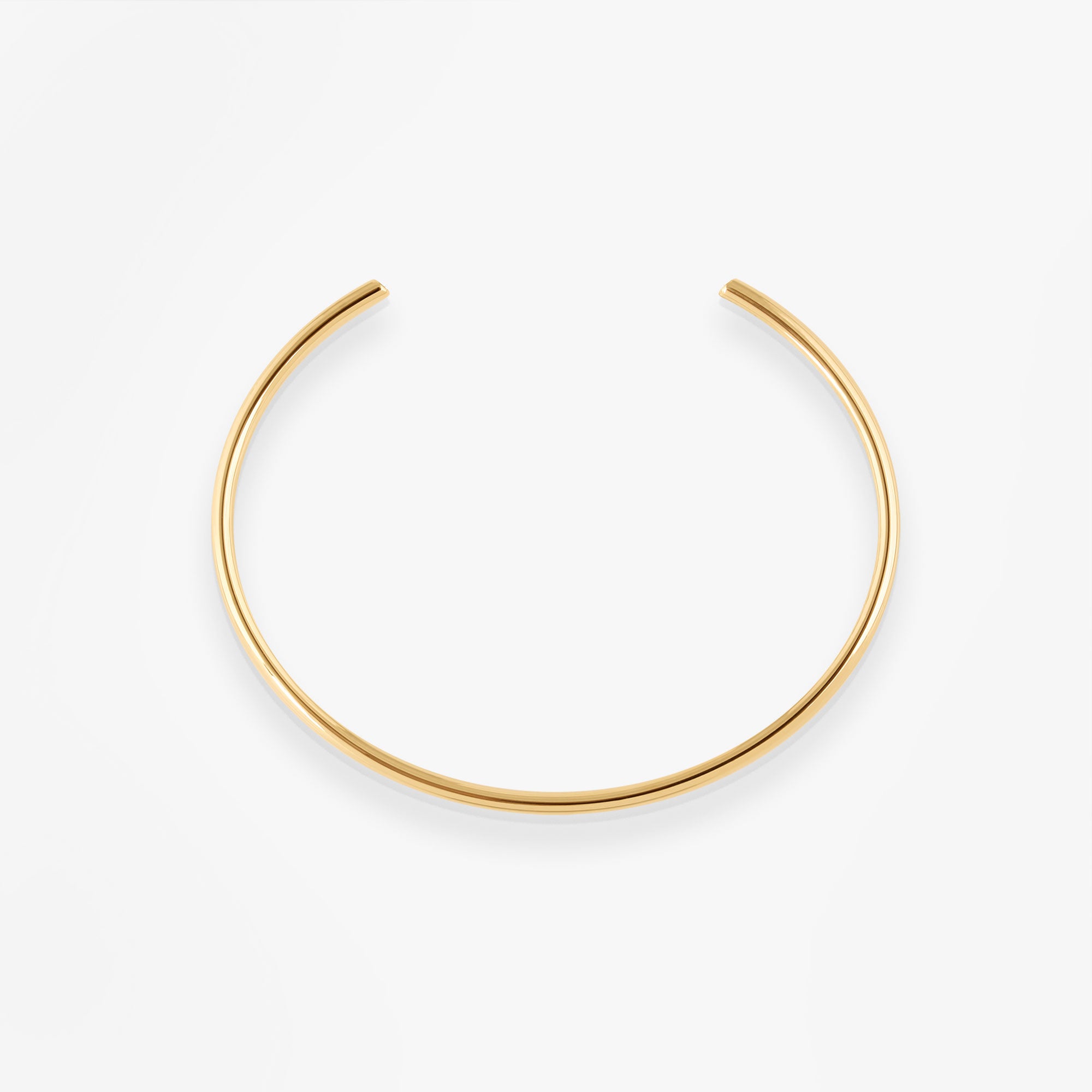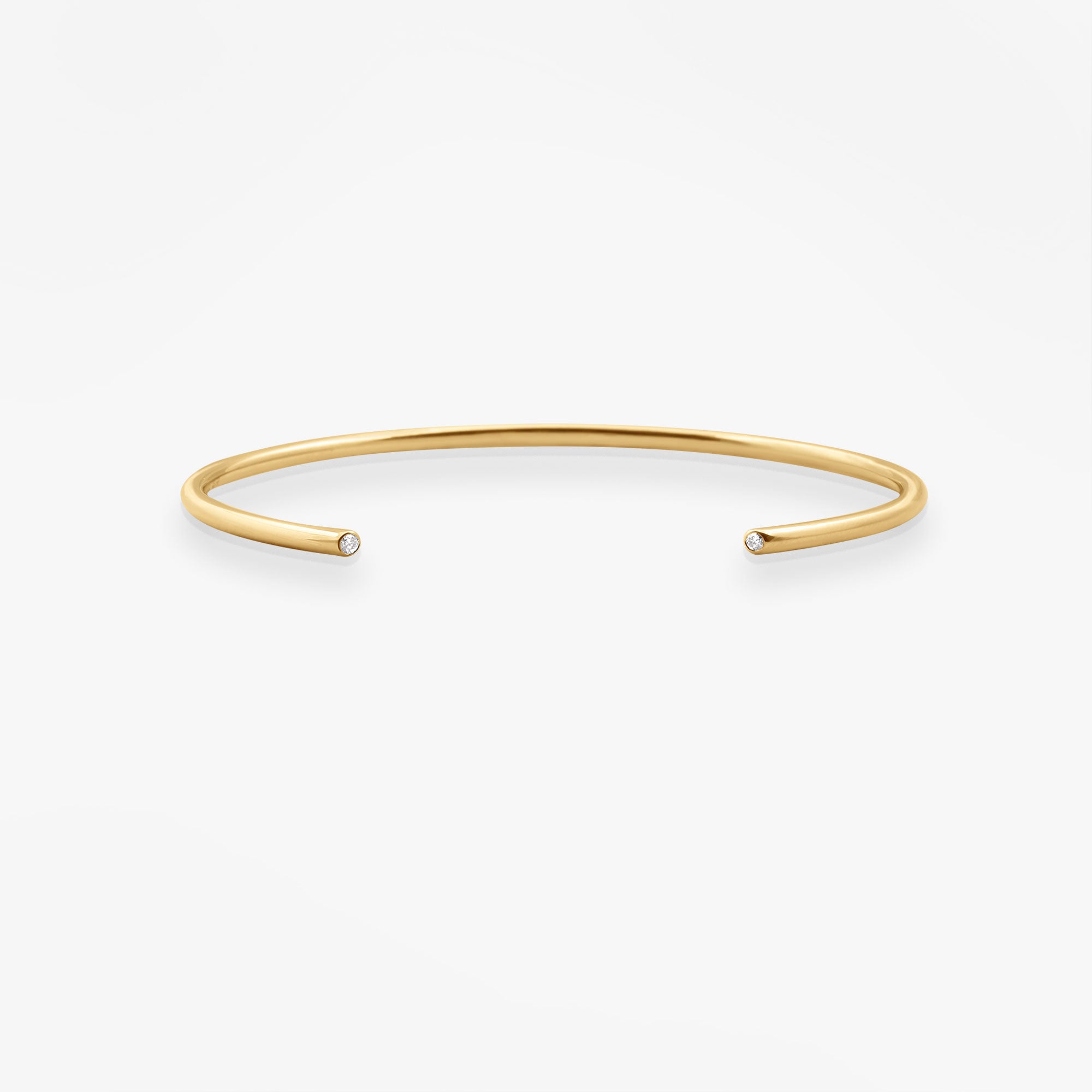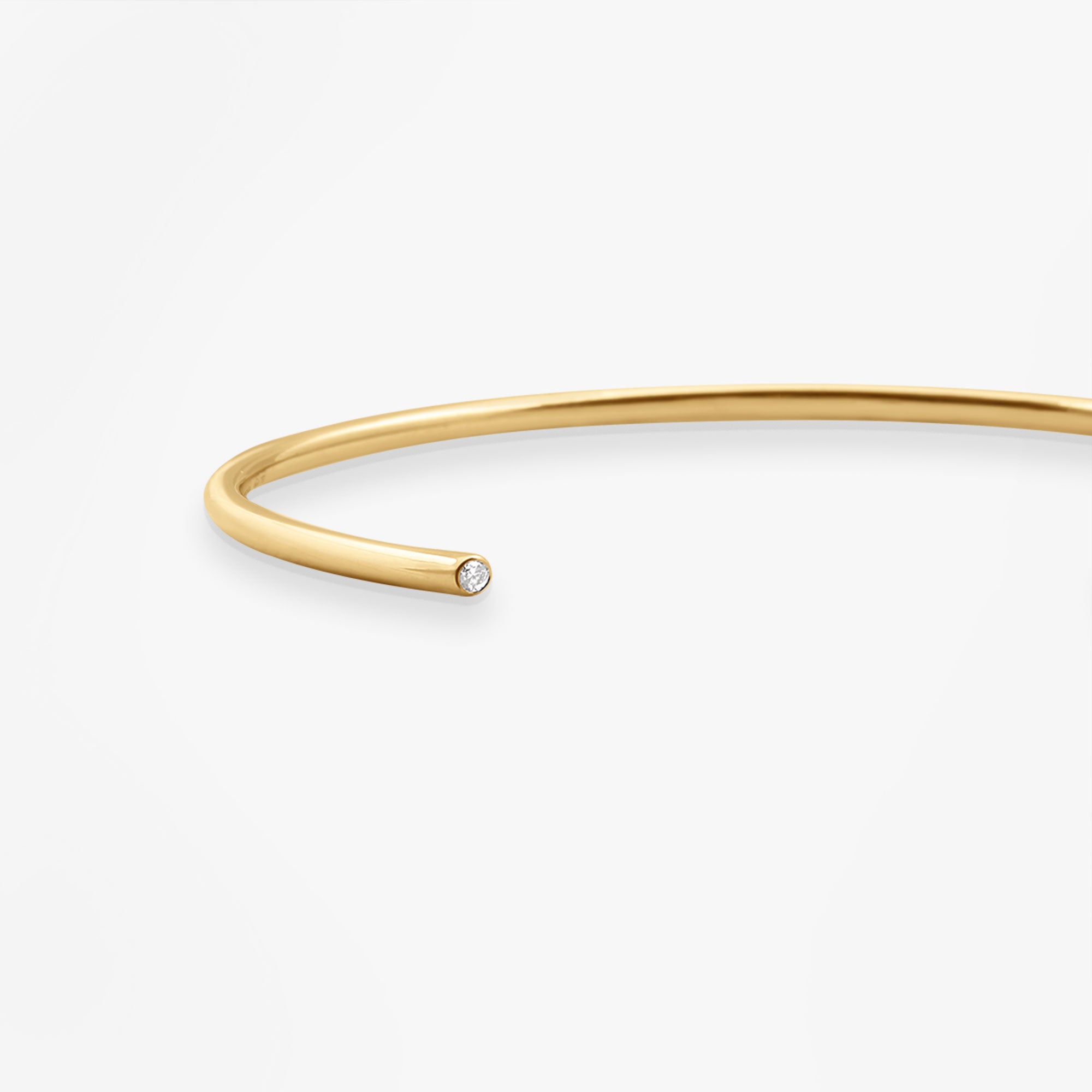 Or jaune 18k et diamantsCe jonc d’inspiration tribale séduit par sa forme singulière et son travail à la main. En or 18k, ses extrémités sont biseautées et piquées de diamants pour une touche discrètement sophistiquée.
