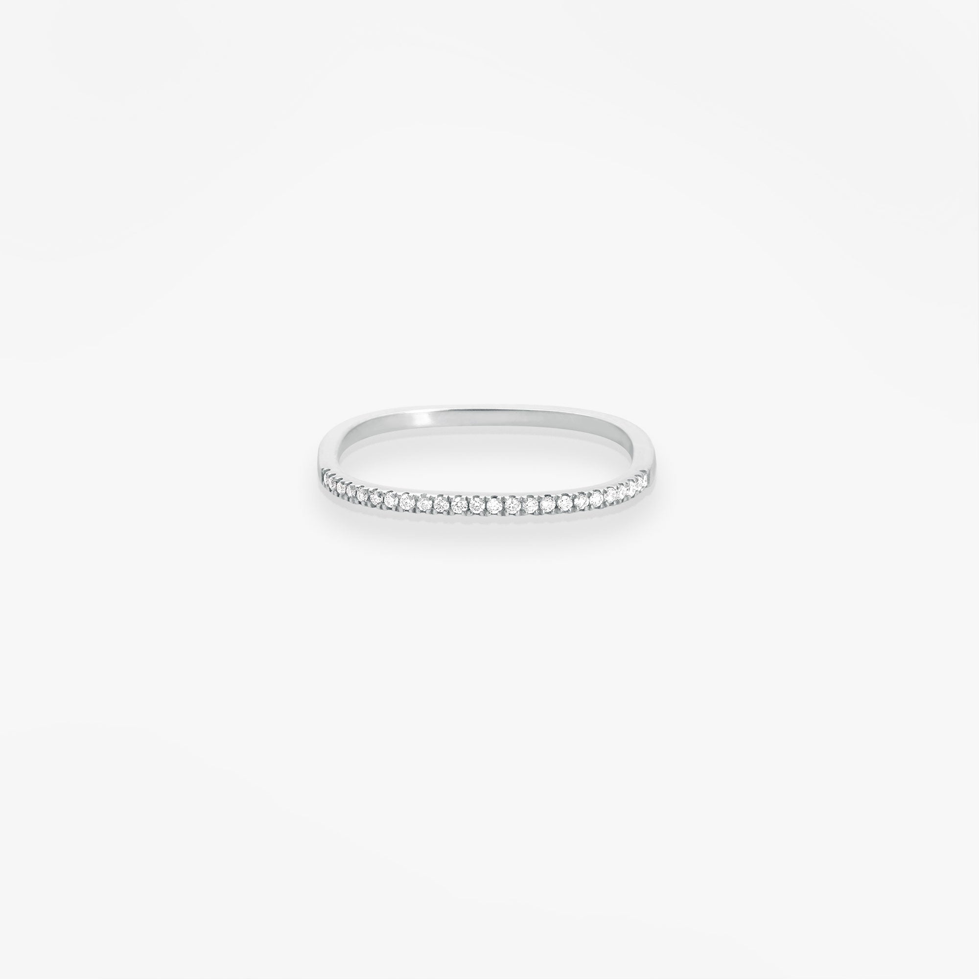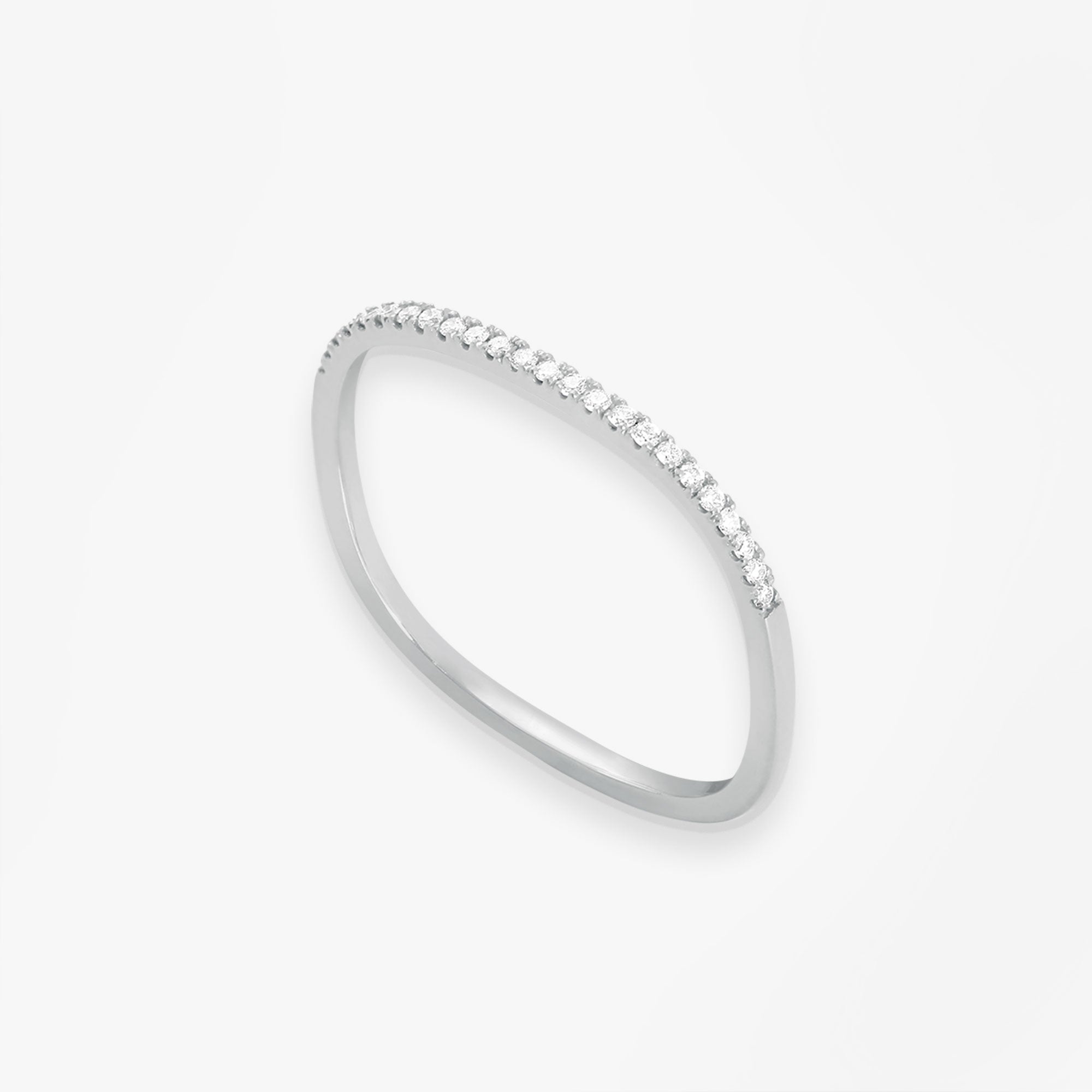 Or blanc 18k et diamantsUne bague à la forme carrée galbée et semi pavée d'une ligne de diamants étincelants. Elle s'accumulera à la perfection avec d'autres bagues de la collection pour une attitude ultra tendance.