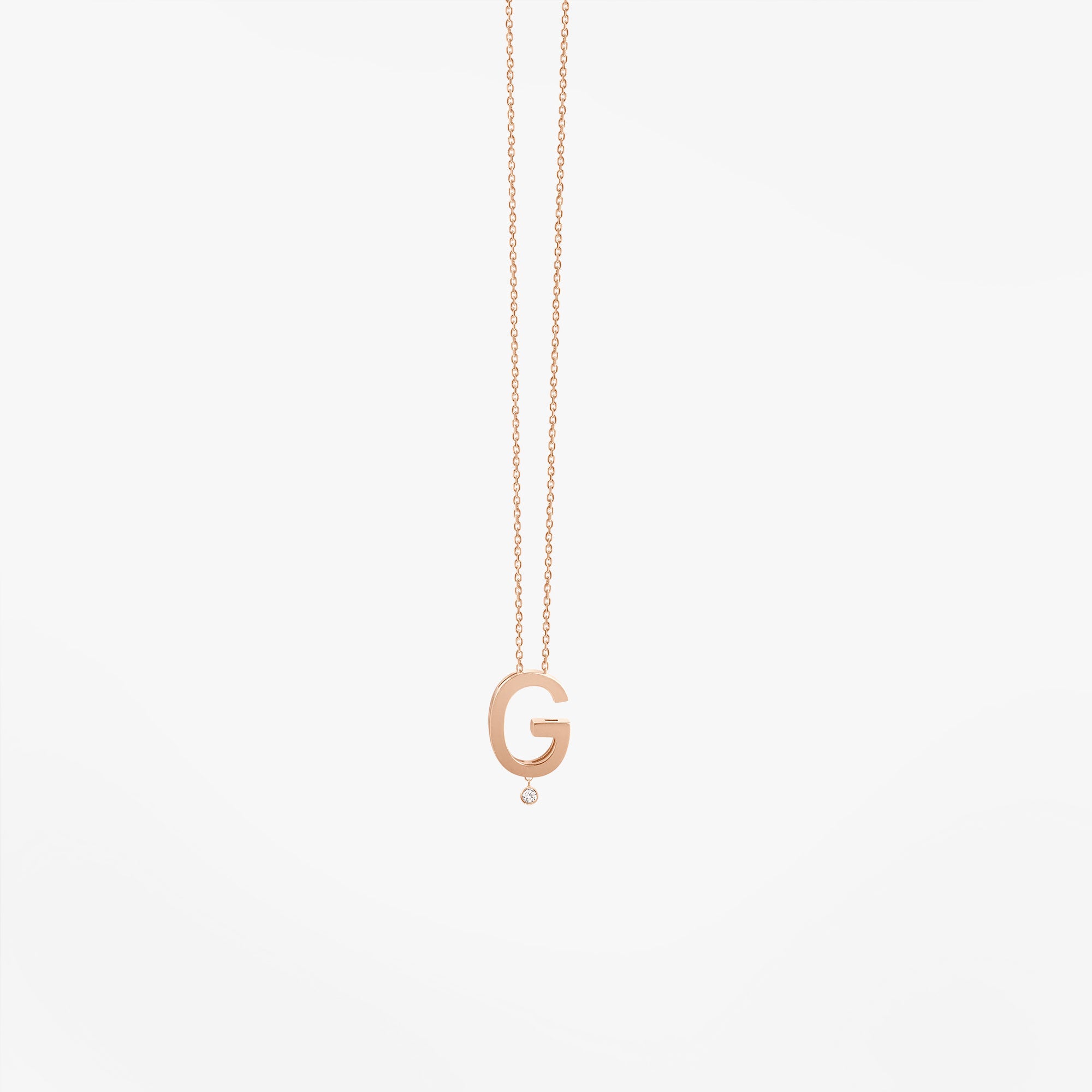 Or rose 18k et diamantCe collier à porter au quotidien est composé d’une mini lettre qui glisse librement le long d’une fine chaîne diamantée. Choisissez votre initiale et vous aurez un cadeau parfait.