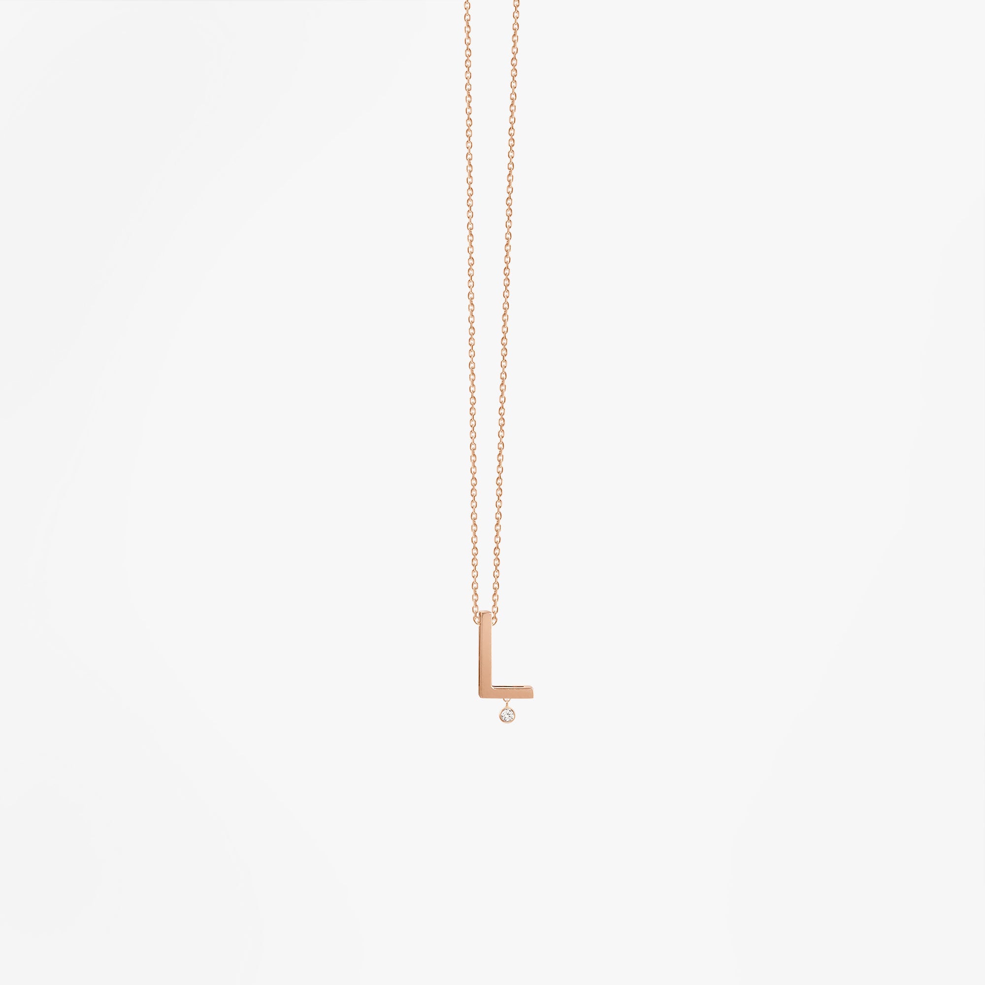 Or rose 18k et diamantCe collier à porter au quotidien est composé d’une mini lettre qui glisse librement le long d’une fine chaîne diamantée. Choisissez votre initiale et vous aurez un cadeau parfait.