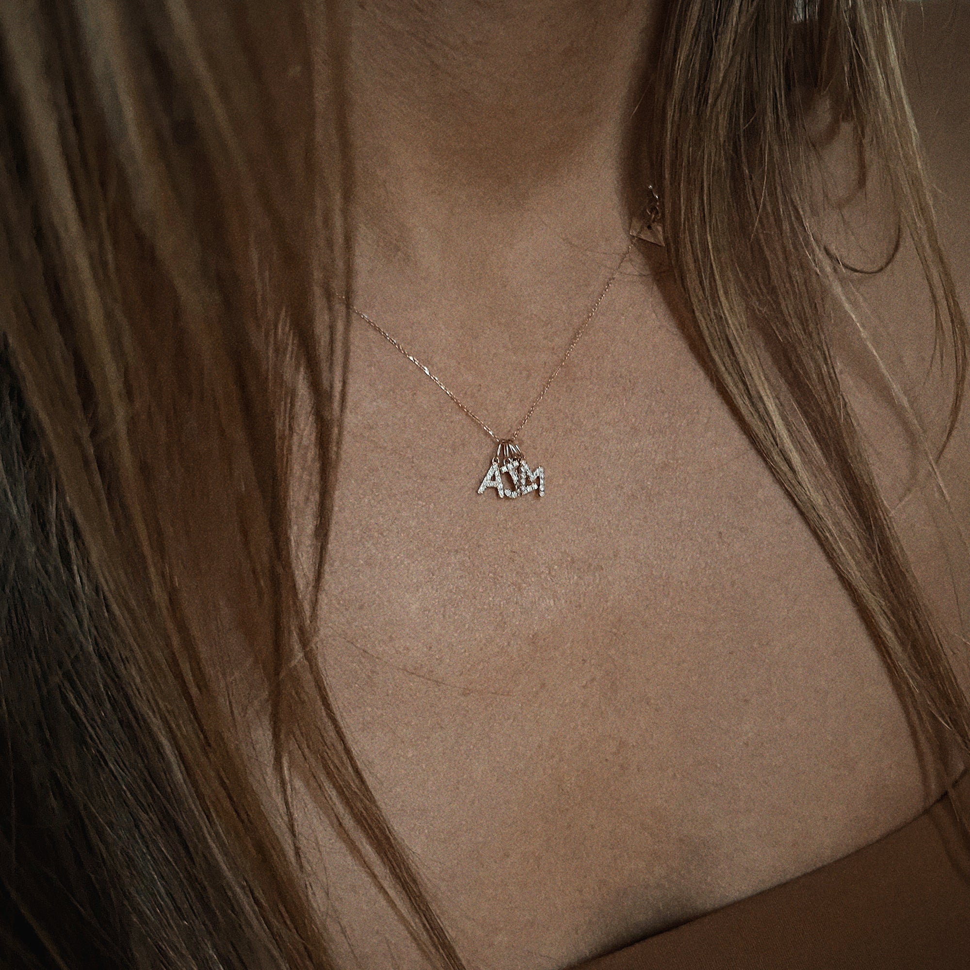 Or rose 18k et diamantsUne mini Initiale pavée de diamants, simple, moderne et terriblement tendance.