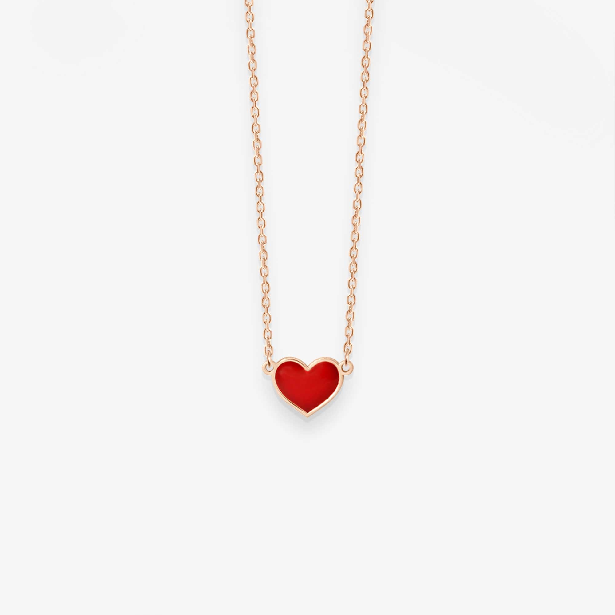 Or rose 18k et émail rougeUn petit emoji délicat à porter au creux de votre cou, symbole d'amour de passion ou d'amitié.