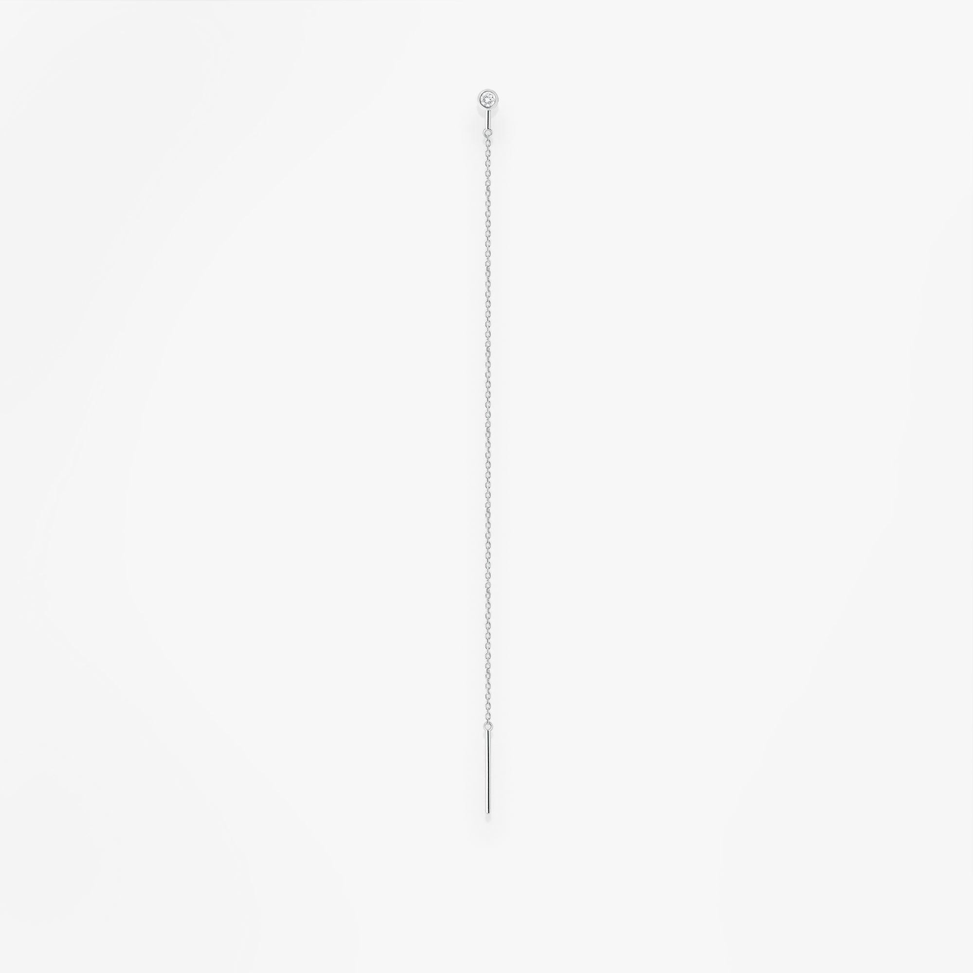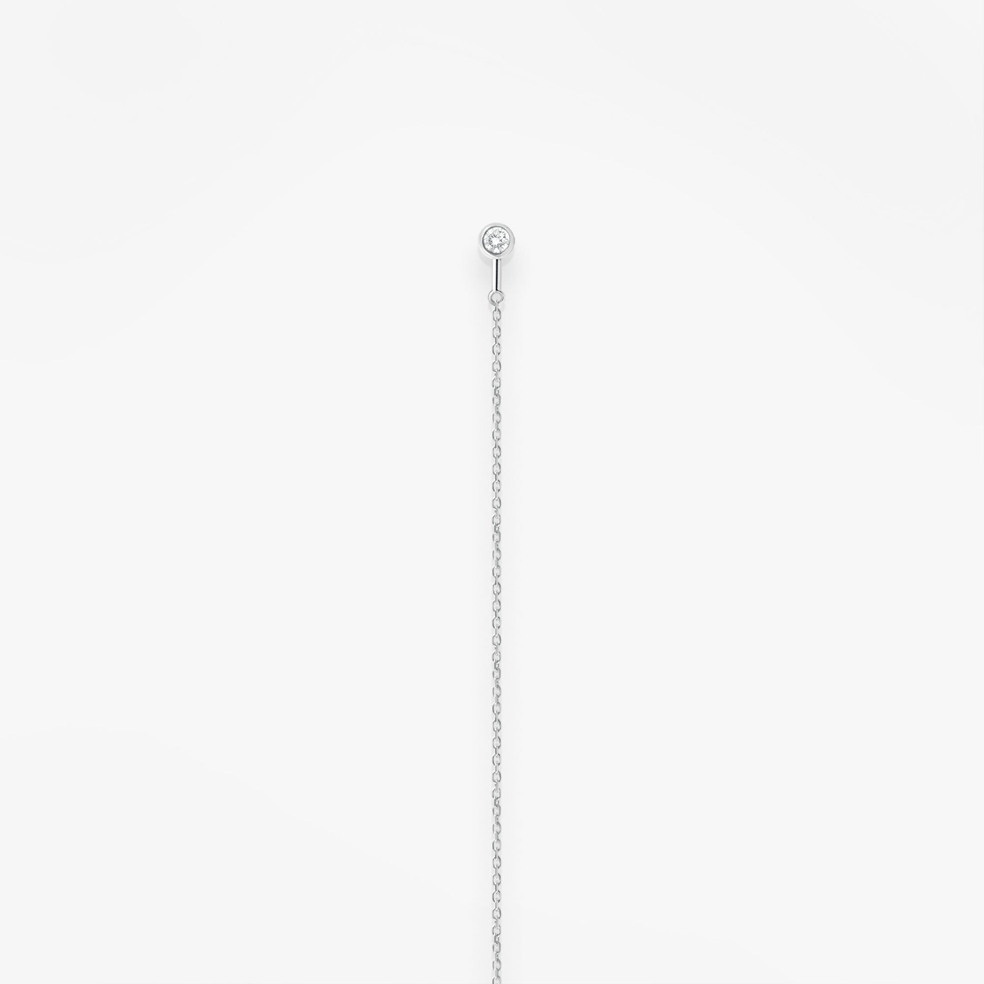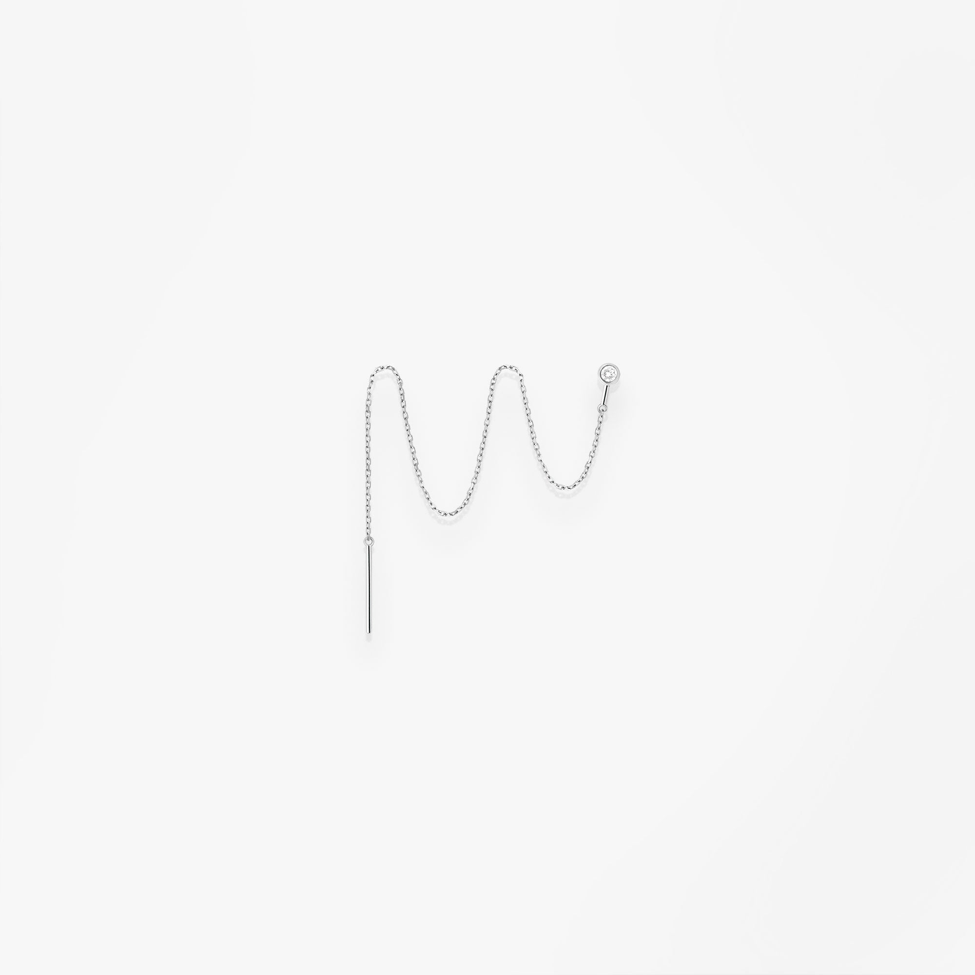 Or blanc 18k et diamantUne délicate chaîne d'oreille sans fermoir sertie d’un simple diamant. Donnez une touche moderne à votre look en la passant d’un trou à l’autre si vous avez plusieurs percements à l’oreille.