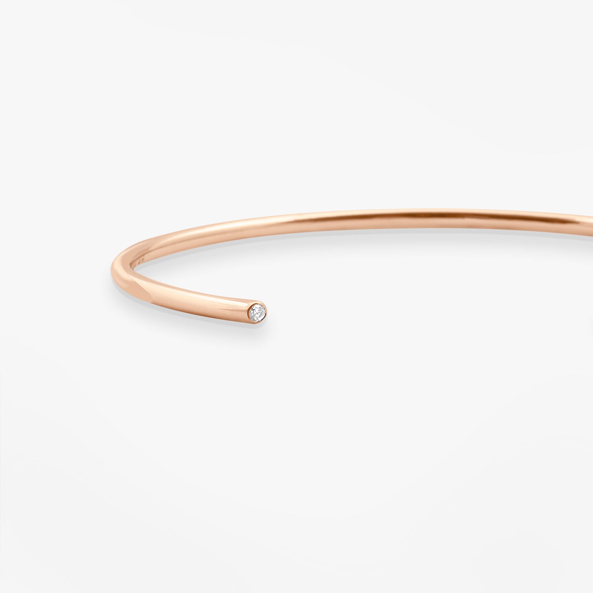 Ce jonc d’inspiration tribale séduit par sa forme singulière et son travail à la main. En or 18k, ses extrémités sont biseautées et piquées de diamants pour une touche discrètement sophistiquée.