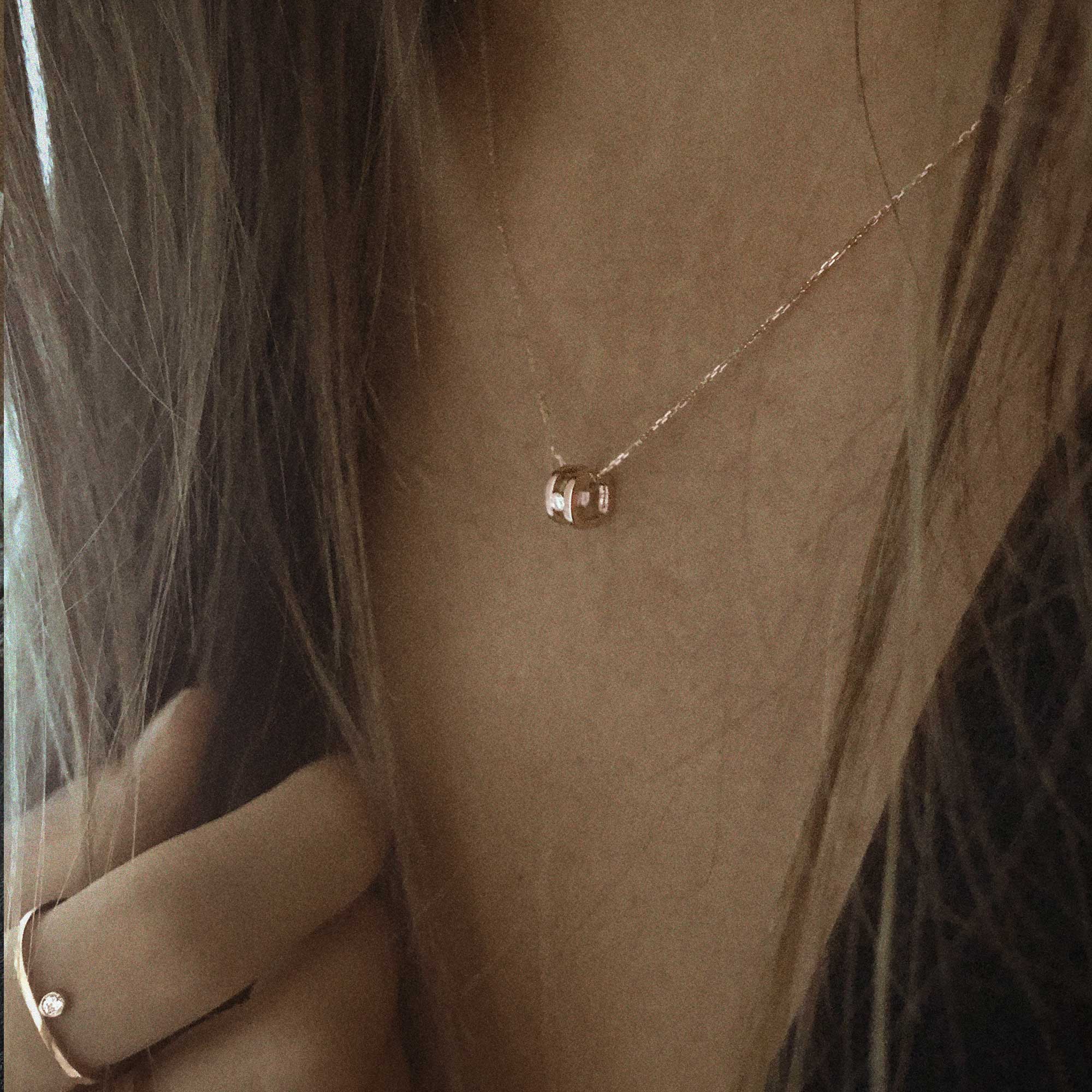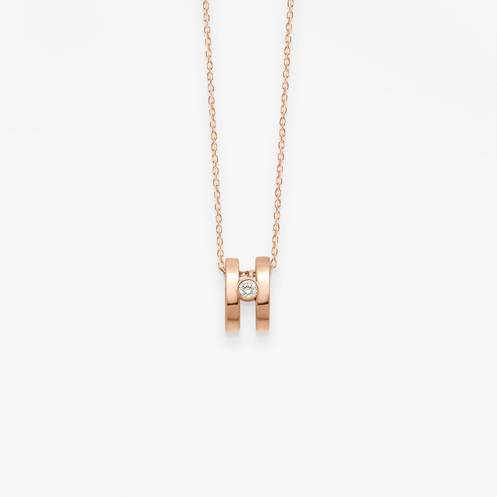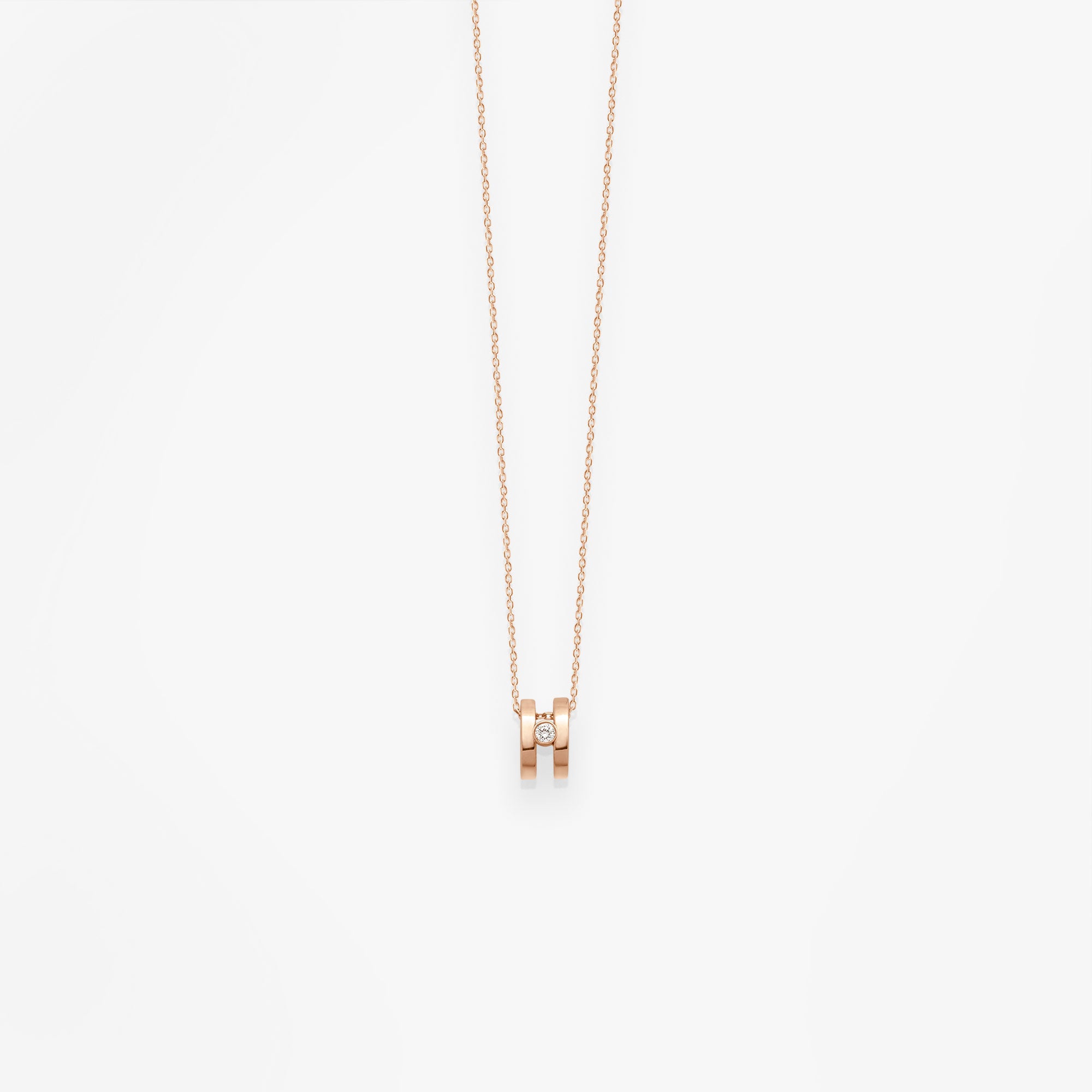 18k rose gold and diamondThis necklace adorned with a double 18k gold ring and diamonds will slide freely along its fine chain.