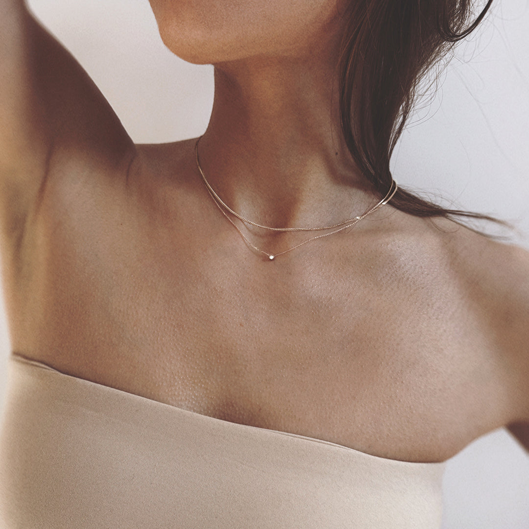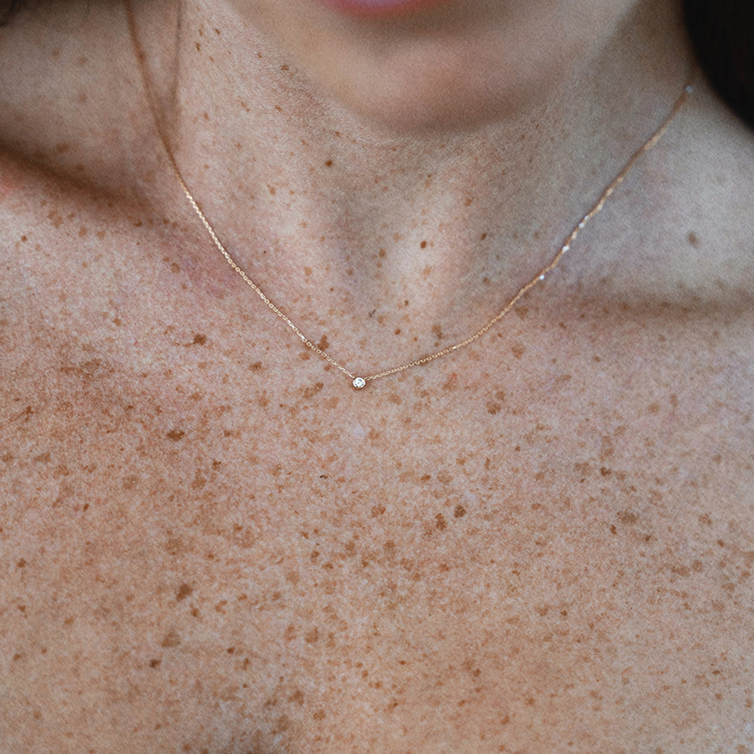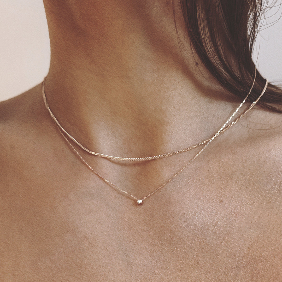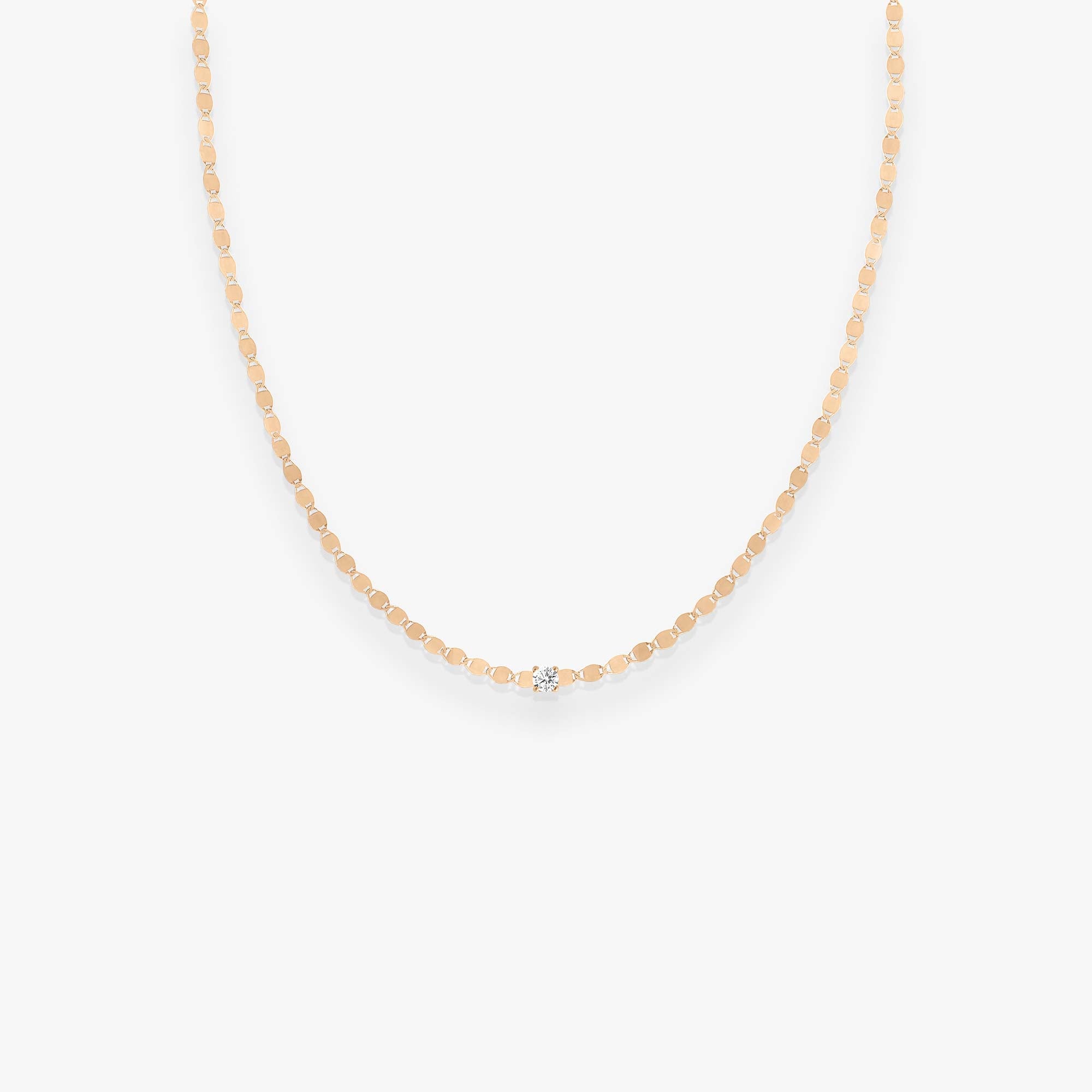 18k rose gold and diamondAn iconic necklace that celebrates the elegance of simplicity. A unique diamond set on a fine diamond chain in 18k rose gold. A timeless jewel that you never leave.