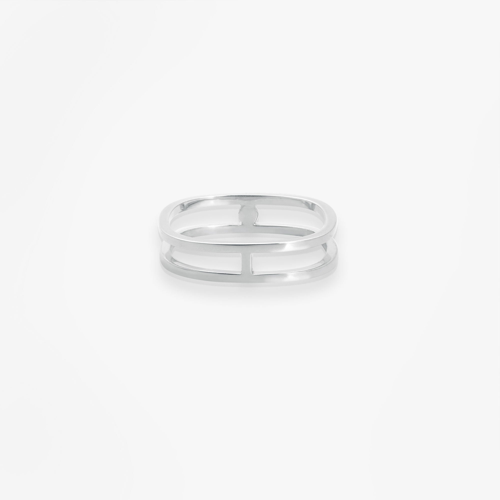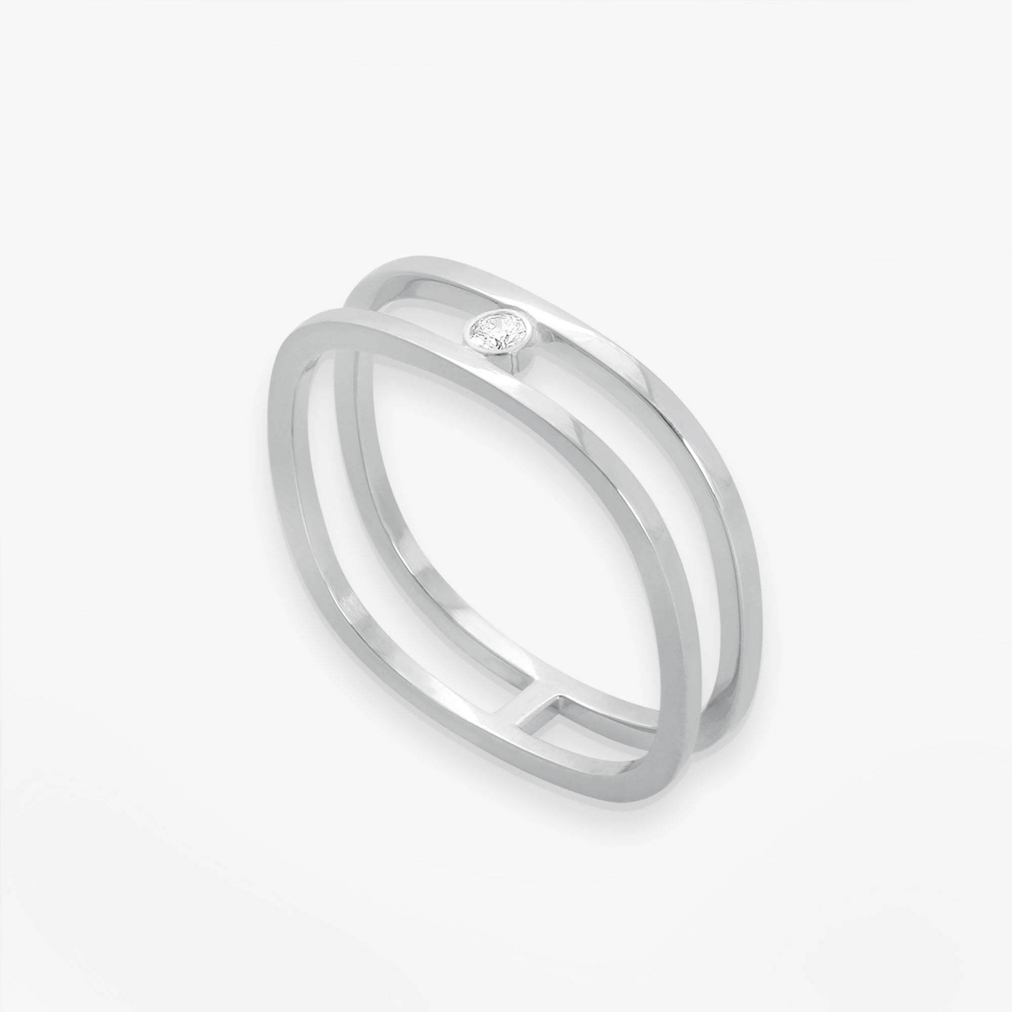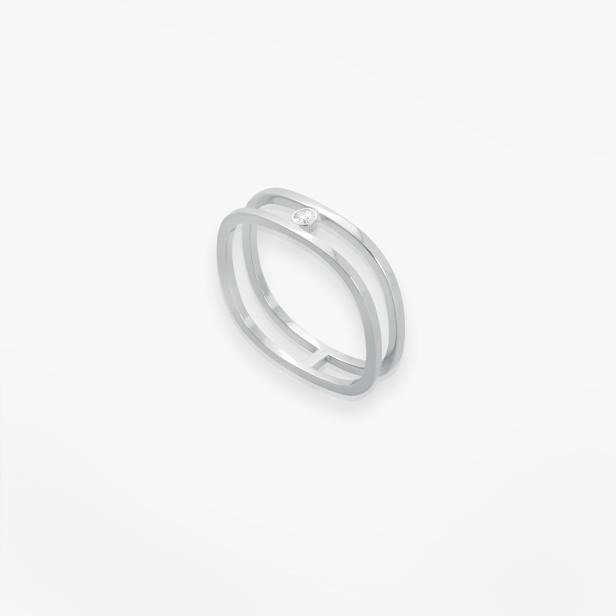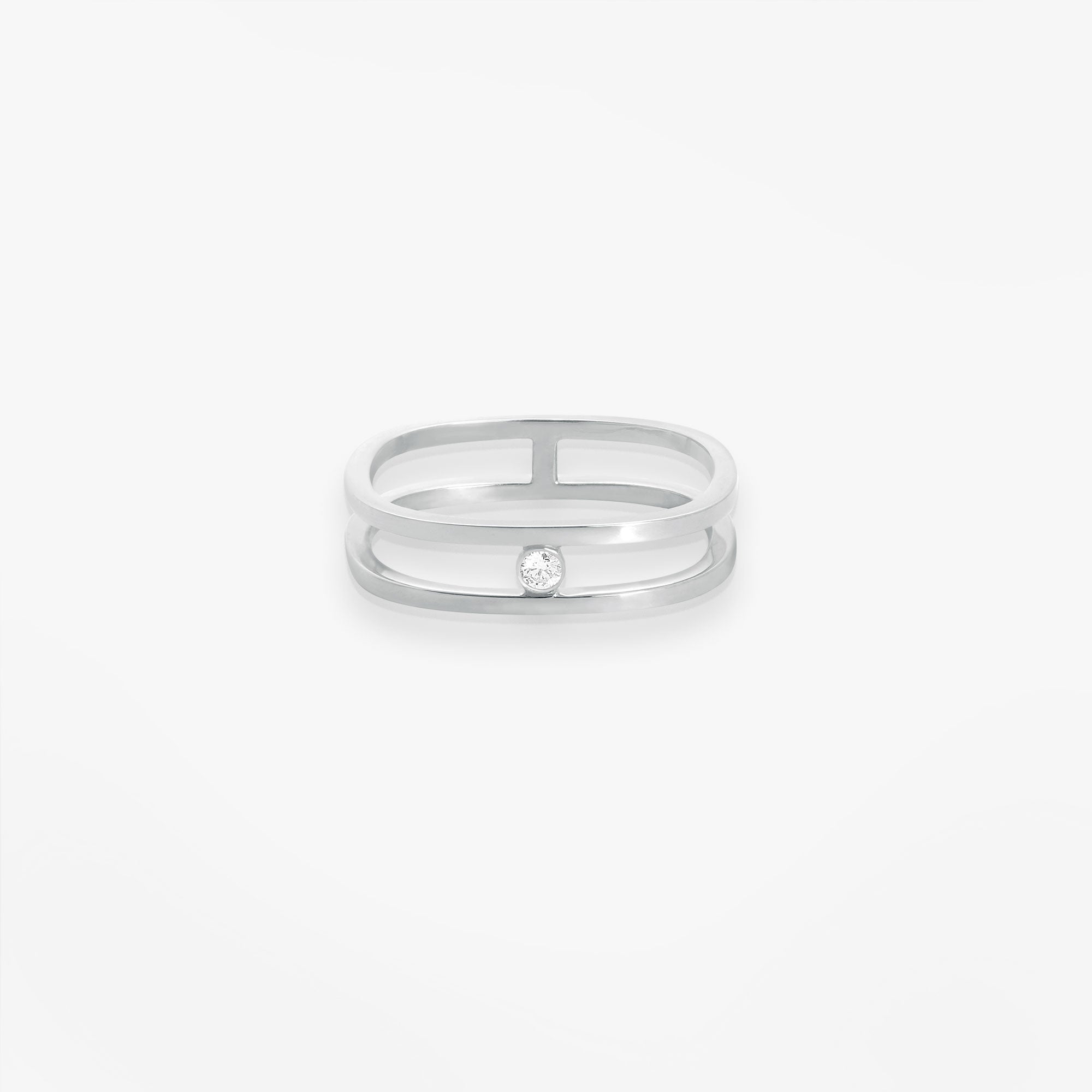 18k white gold and diamondA square shaped double ring with an embellished diamond. A revisited classic to wear every day witch will perfectly stack with other rings of the collection for an ultra trendy attitude.