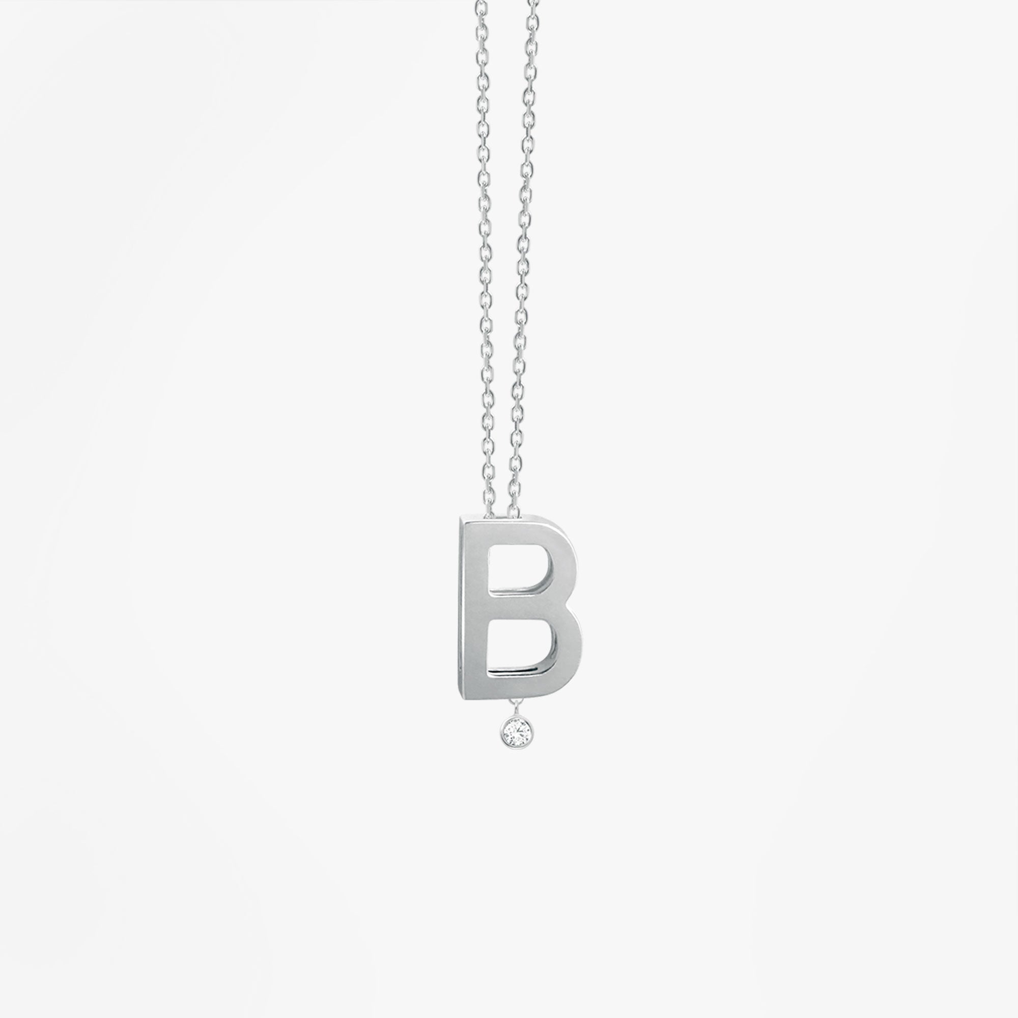 18k white gold and diamondThis necklace to wear everyday is composed of a mini letter that slides freely along a fine diamond chain. Choose your initial and you will have a perfect gift.