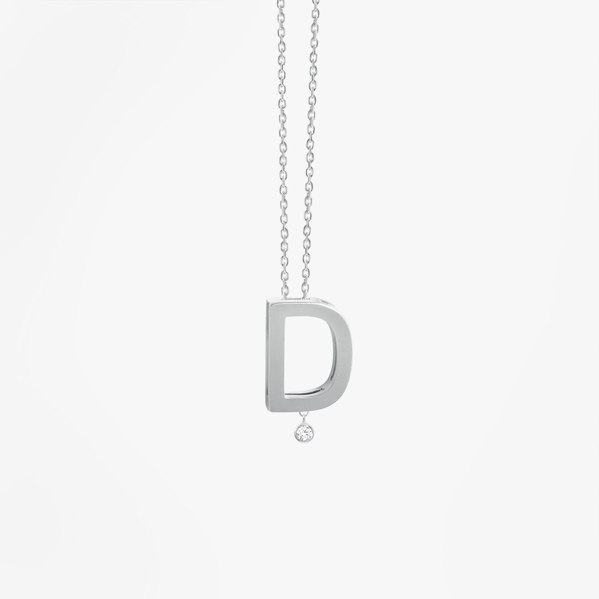 18k white gold and diamondThis necklace to wear everyday is composed of a mini letter that slides freely along a fine diamond chain. Choose your initial and you will have a perfect gift.