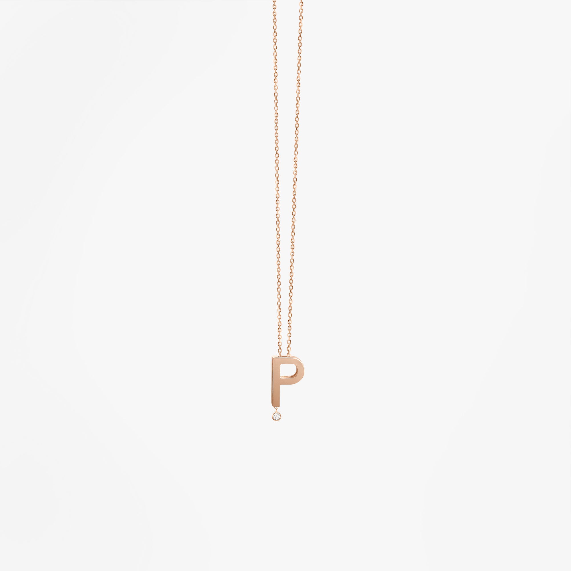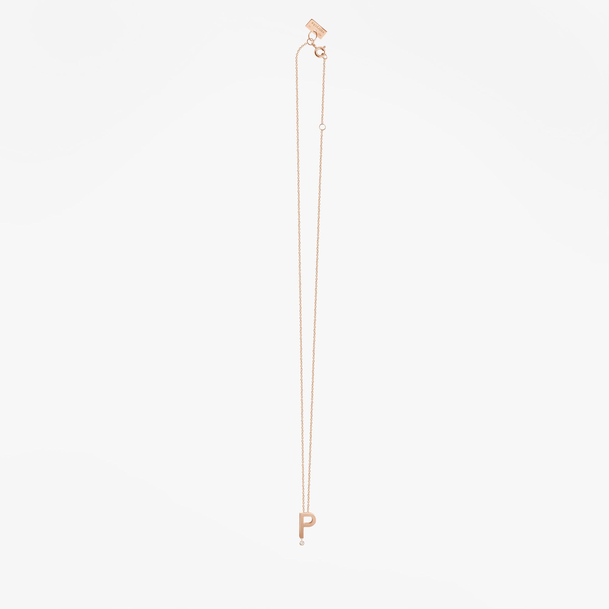 18k rose gold and diamondThis necklace to wear everyday is composed of a mini letter that slides freely along a fine diamond chain. Choose your initial and you will have a perfect gift.
