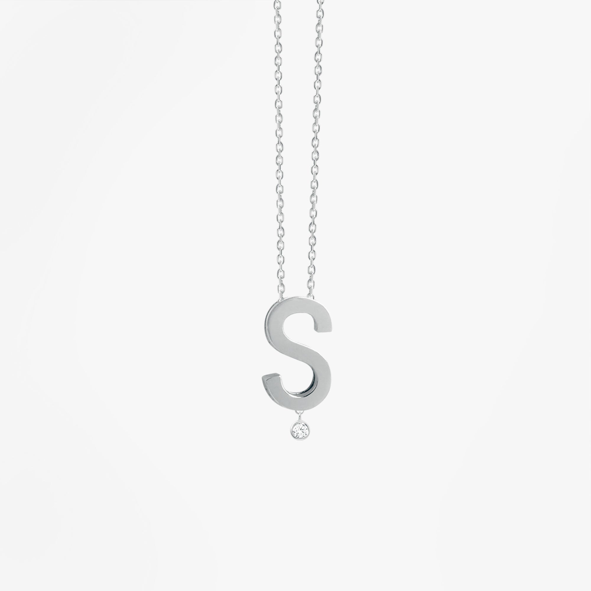 18k white gold and diamondThis necklace to wear everyday is composed of a mini letter that slides freely along a fine diamond chain. Choose your initial and you will have a perfect gift.