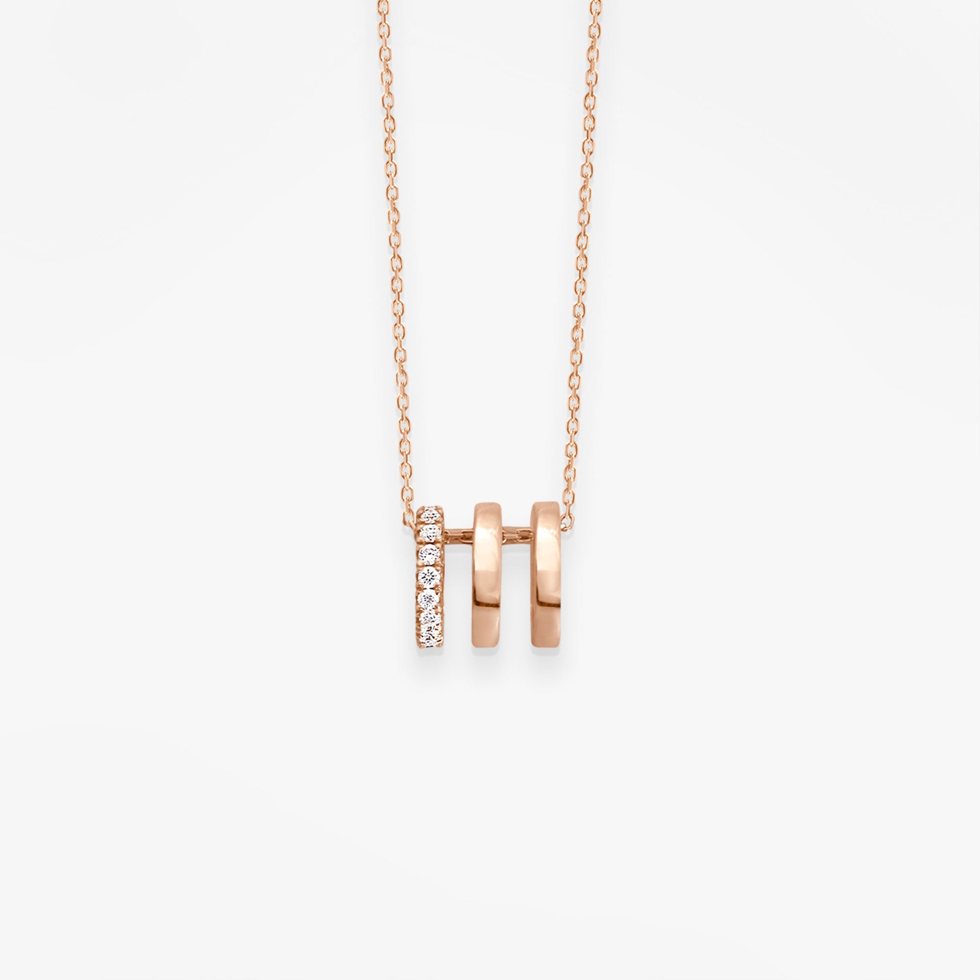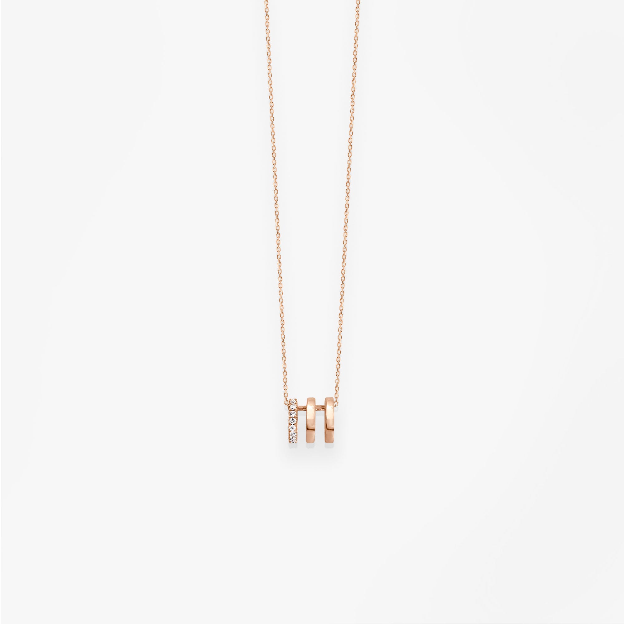 18k rose gold and diamondsThis necklace to be worn daily adorned with a triple 18k gold and diamond ring will slide freely along its fine diamond chain.