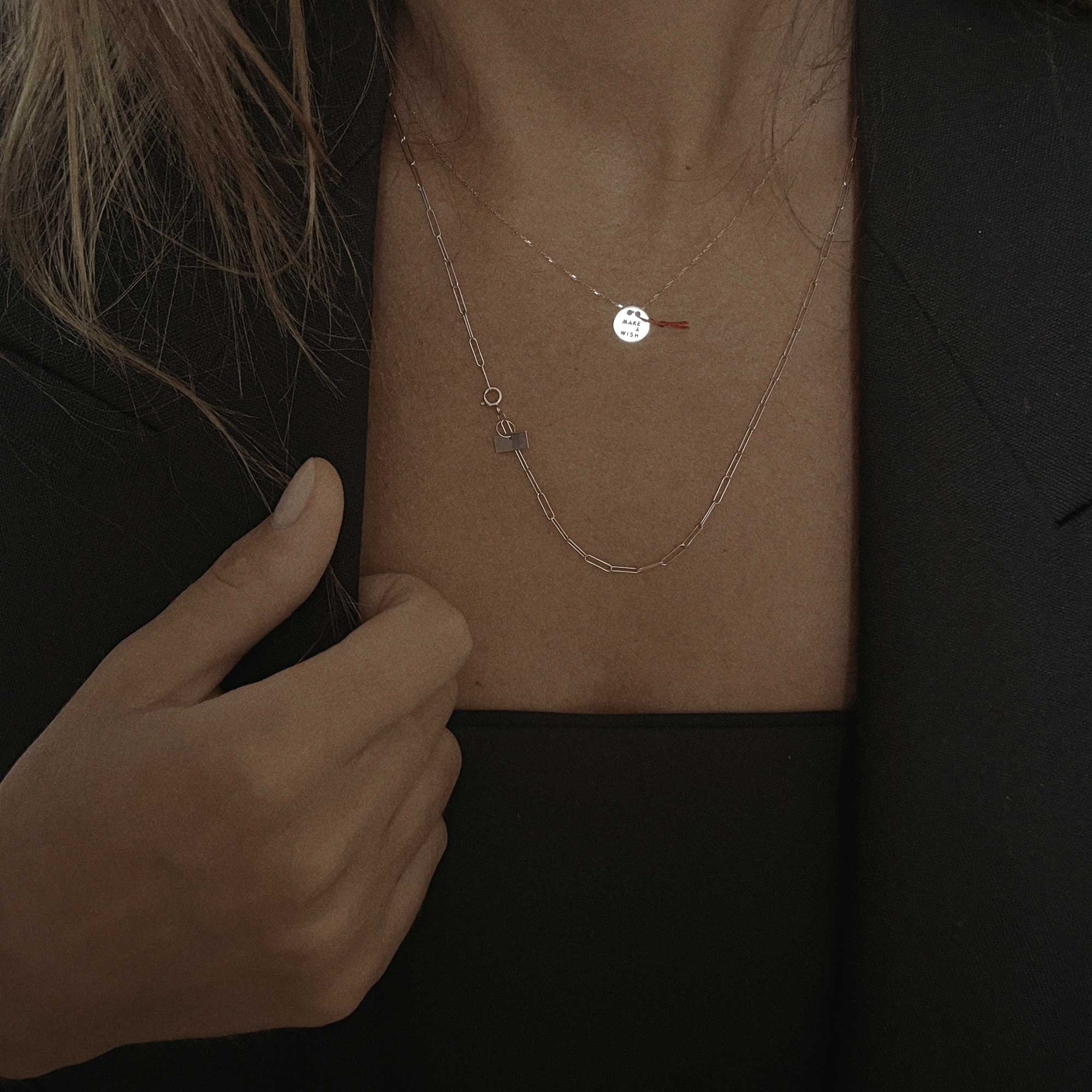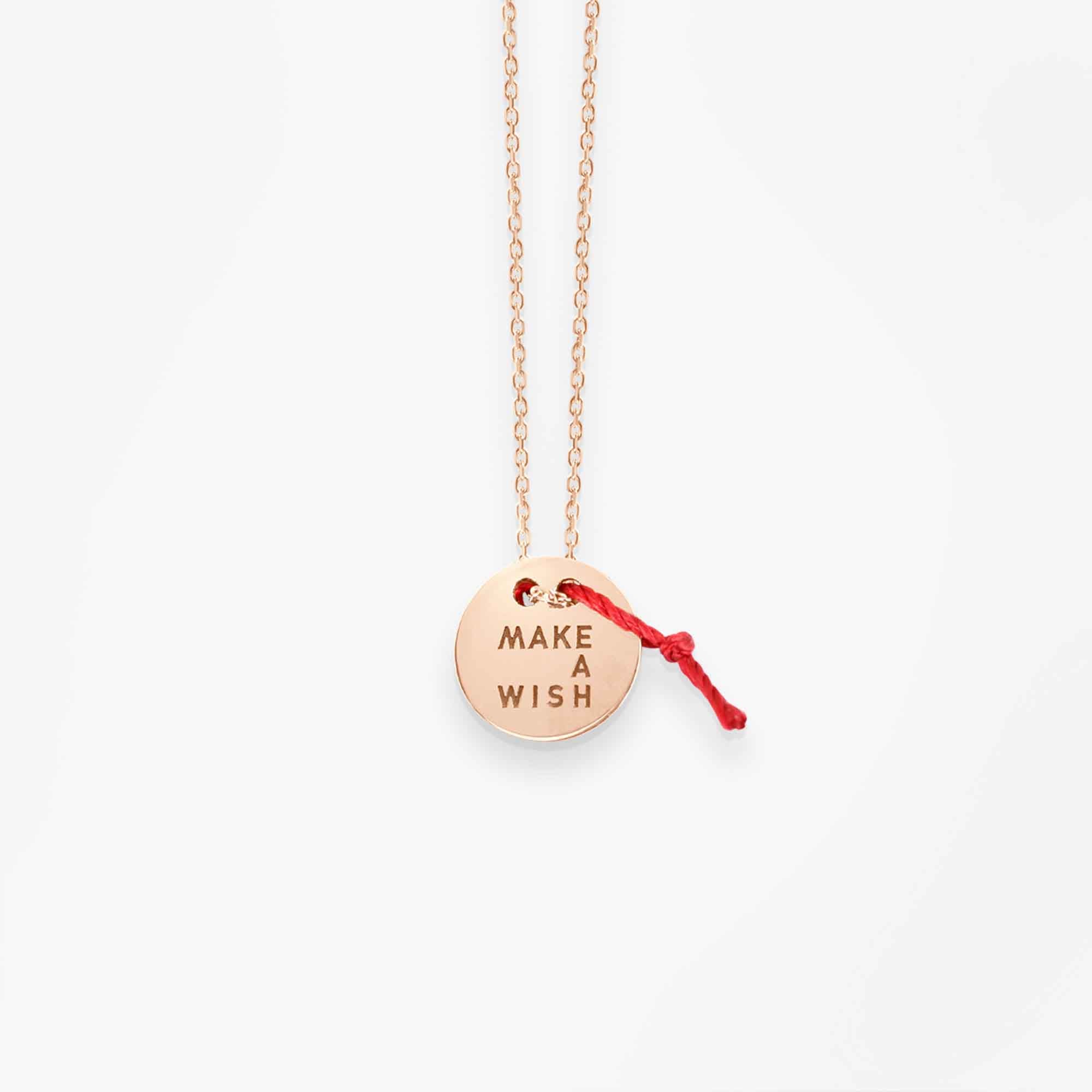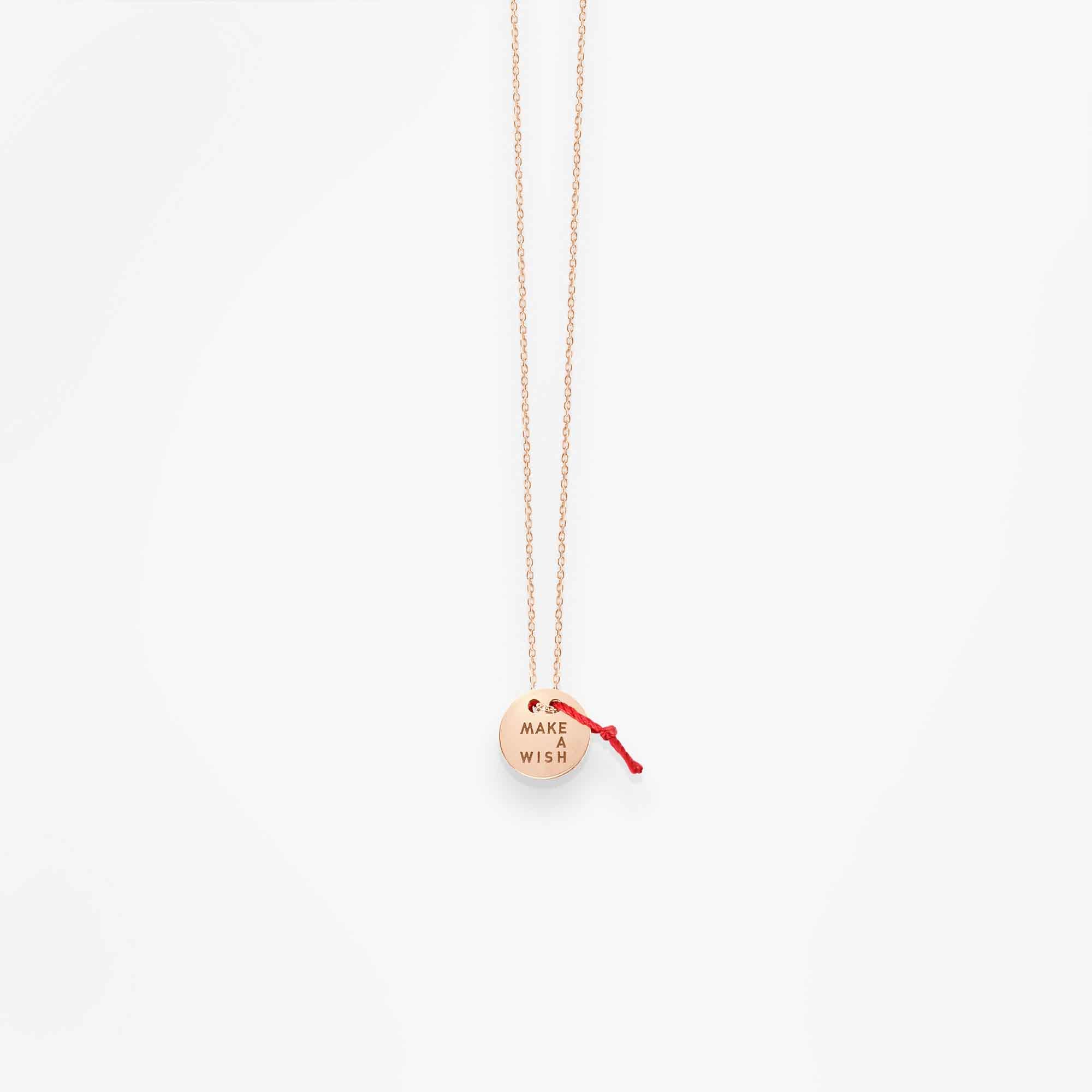 18k rose goldAn iconic 18k rose gold necklace. Make a wish the day you wear it for the first time. With time, the red silk thread comes off and the wish comes true.