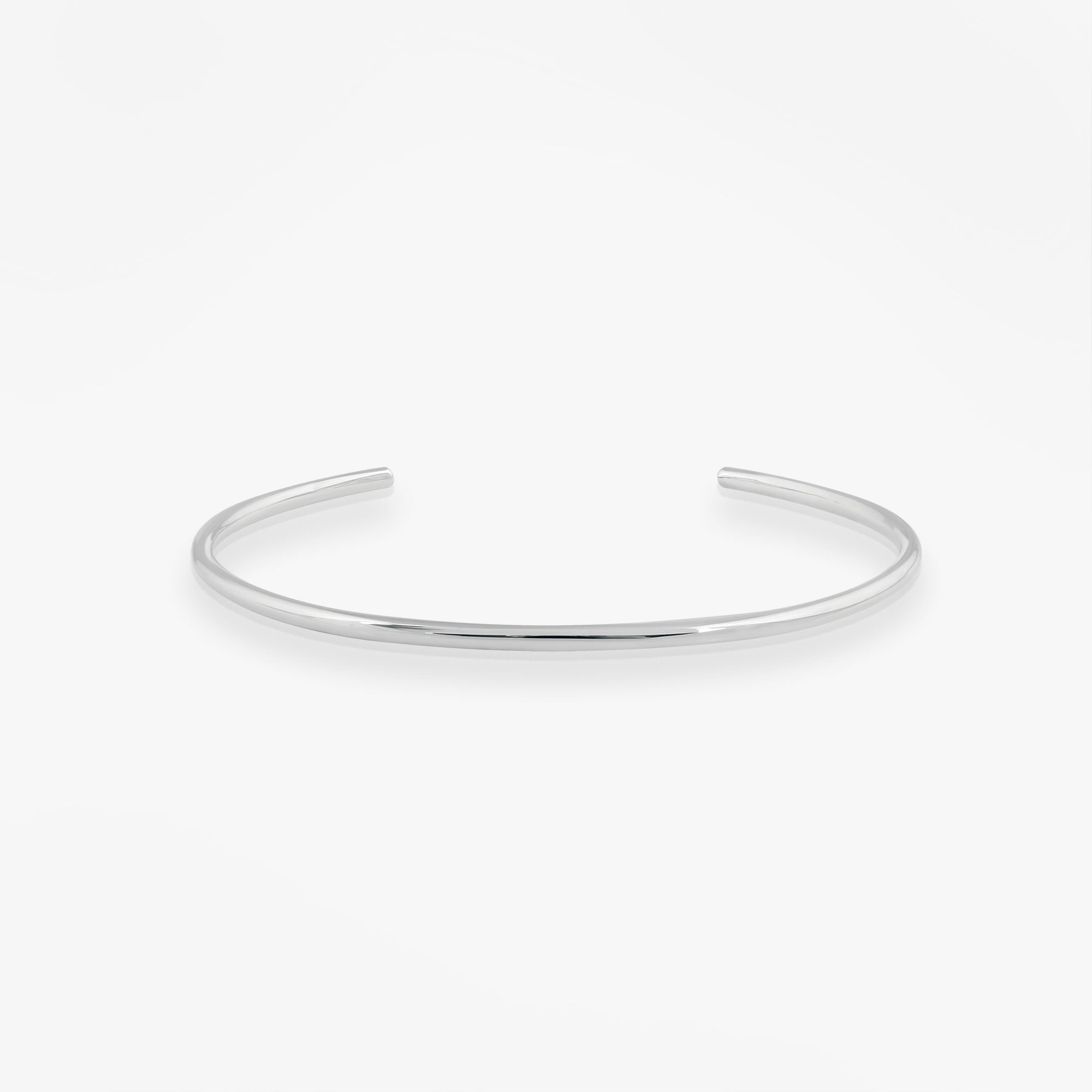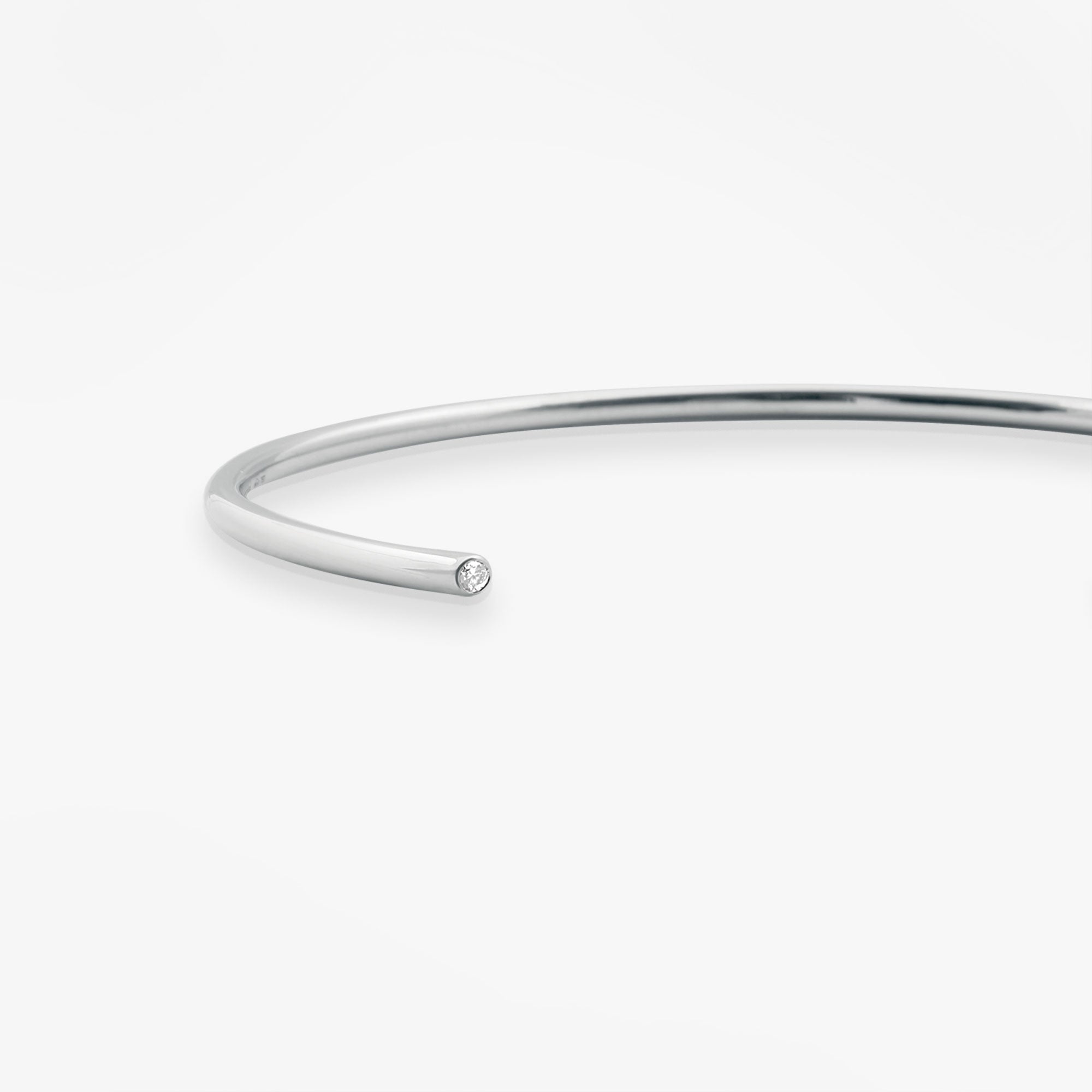18k white gold and diamondsThis tribal-inspired bangle seduces by its singular shape and its handmade work. In 18k white gold, its ends are beveled and diamond-stitched for a discreetly sophisticated touch.