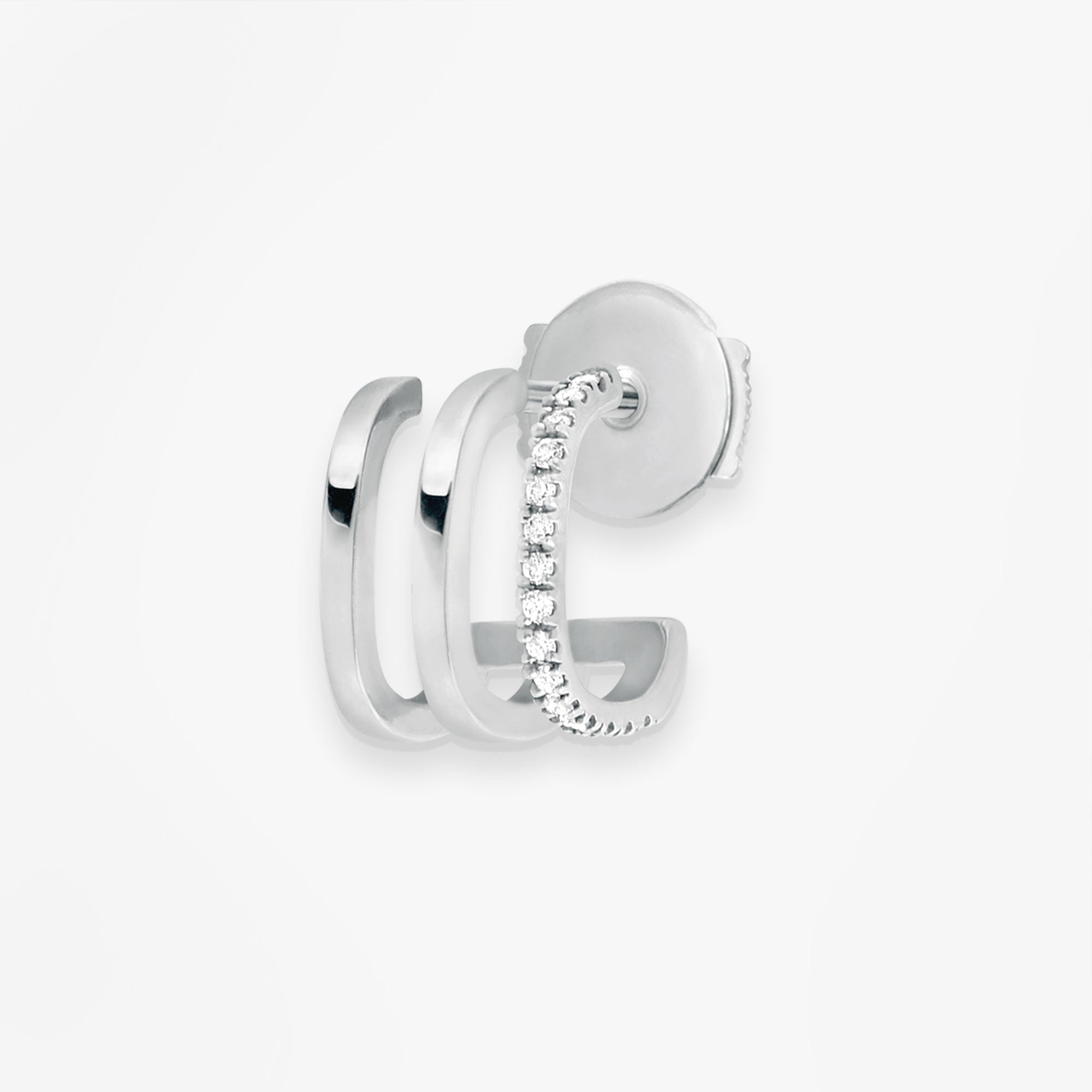 18k white gold and diamonds right earRenewal in the hoop family with this triple hoop effect that comes to perfectly match with the lobe of your left ear. A must have to mix with other models of the collection.
