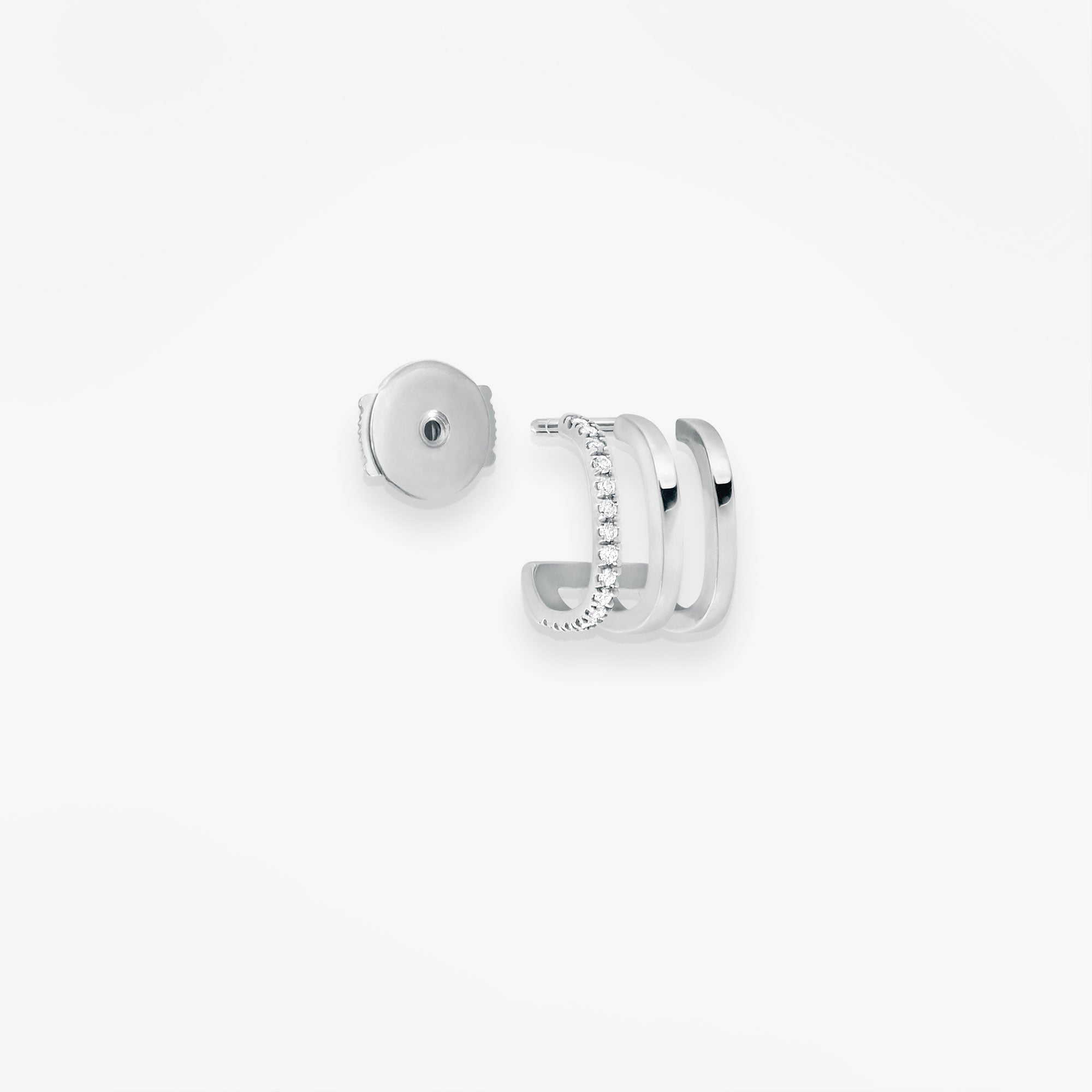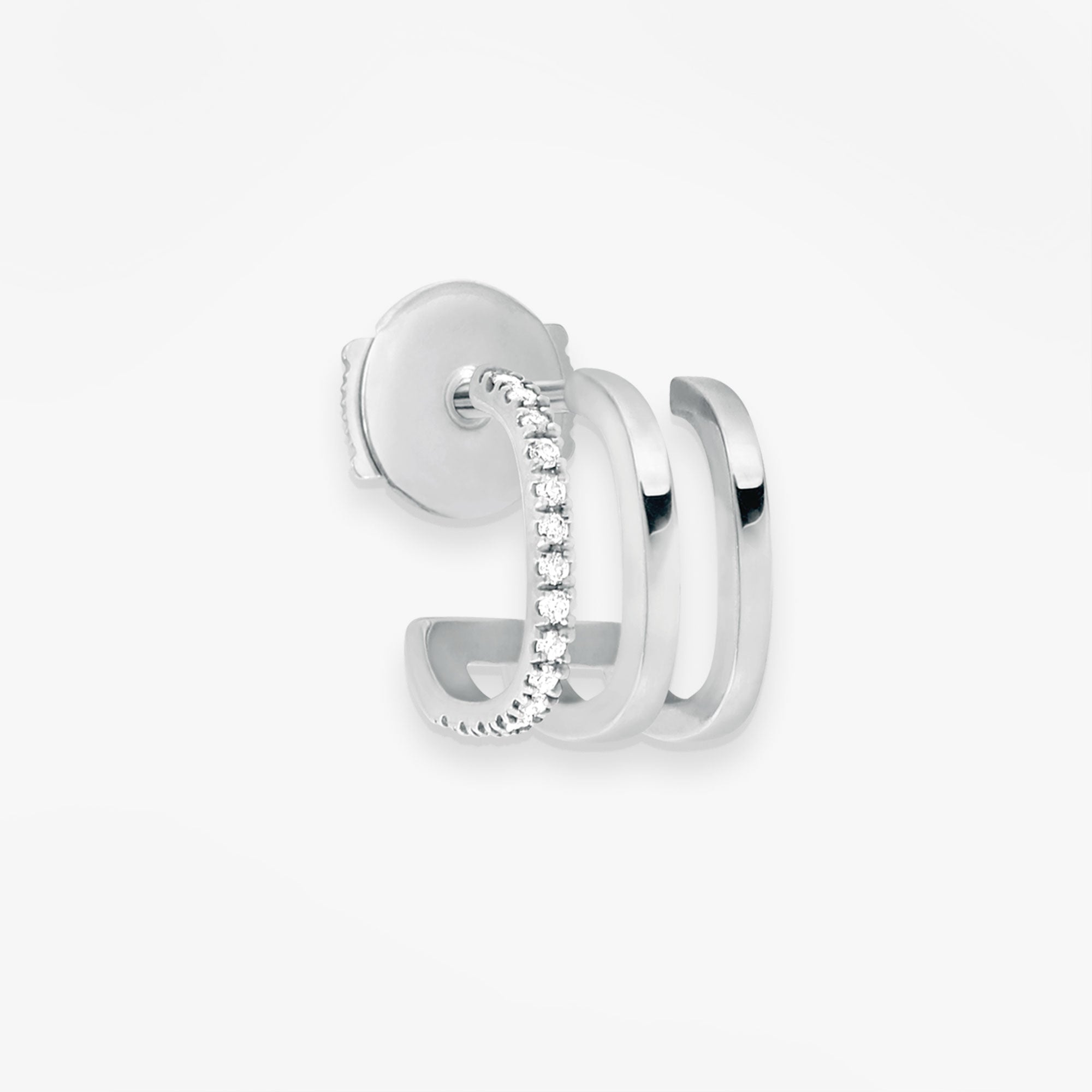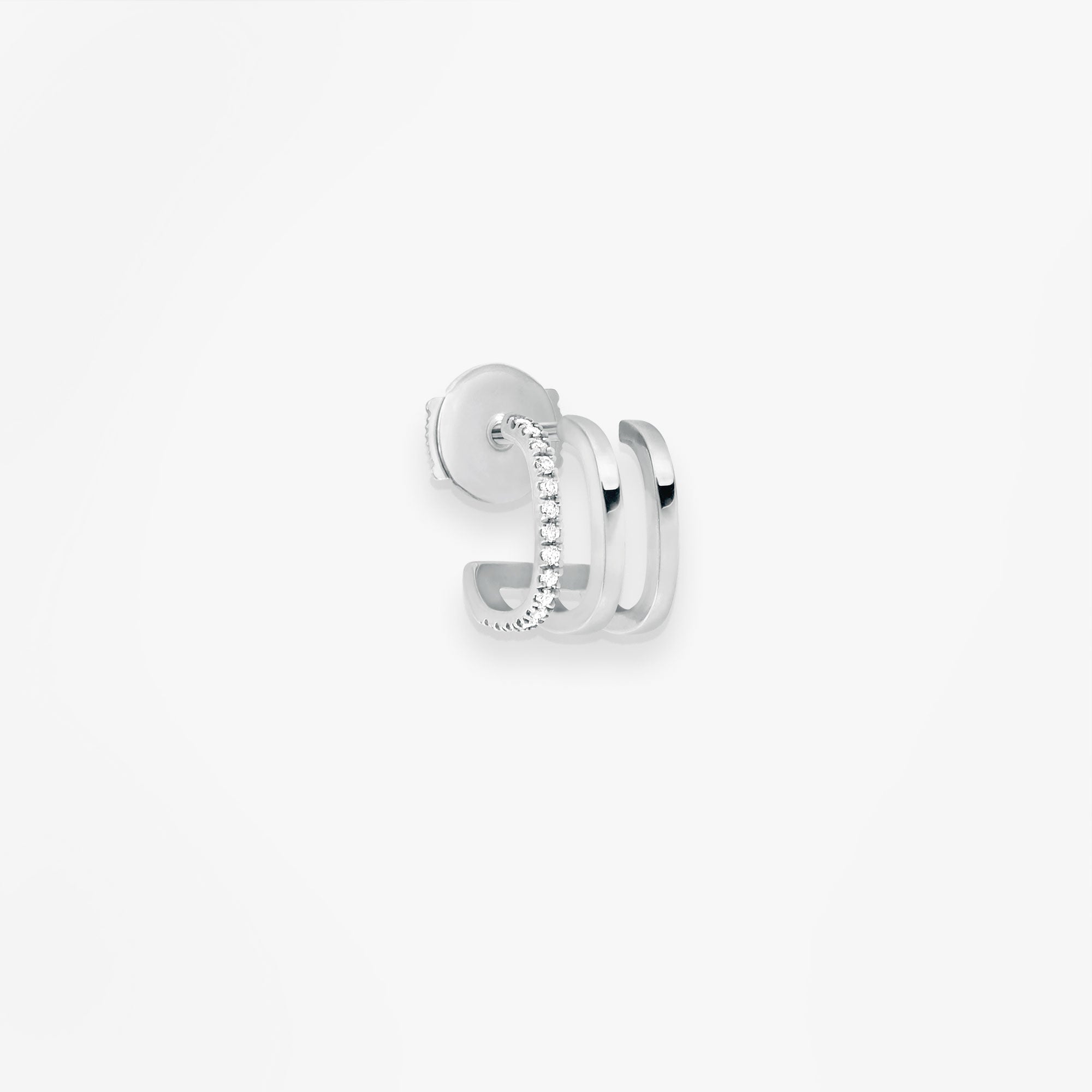18k white gold and diamonds left earRenewal in the hoop family with this triple hoop effect that comes to perfectly match with the lobe of your left ear. A must have to mix with other models of the collection.