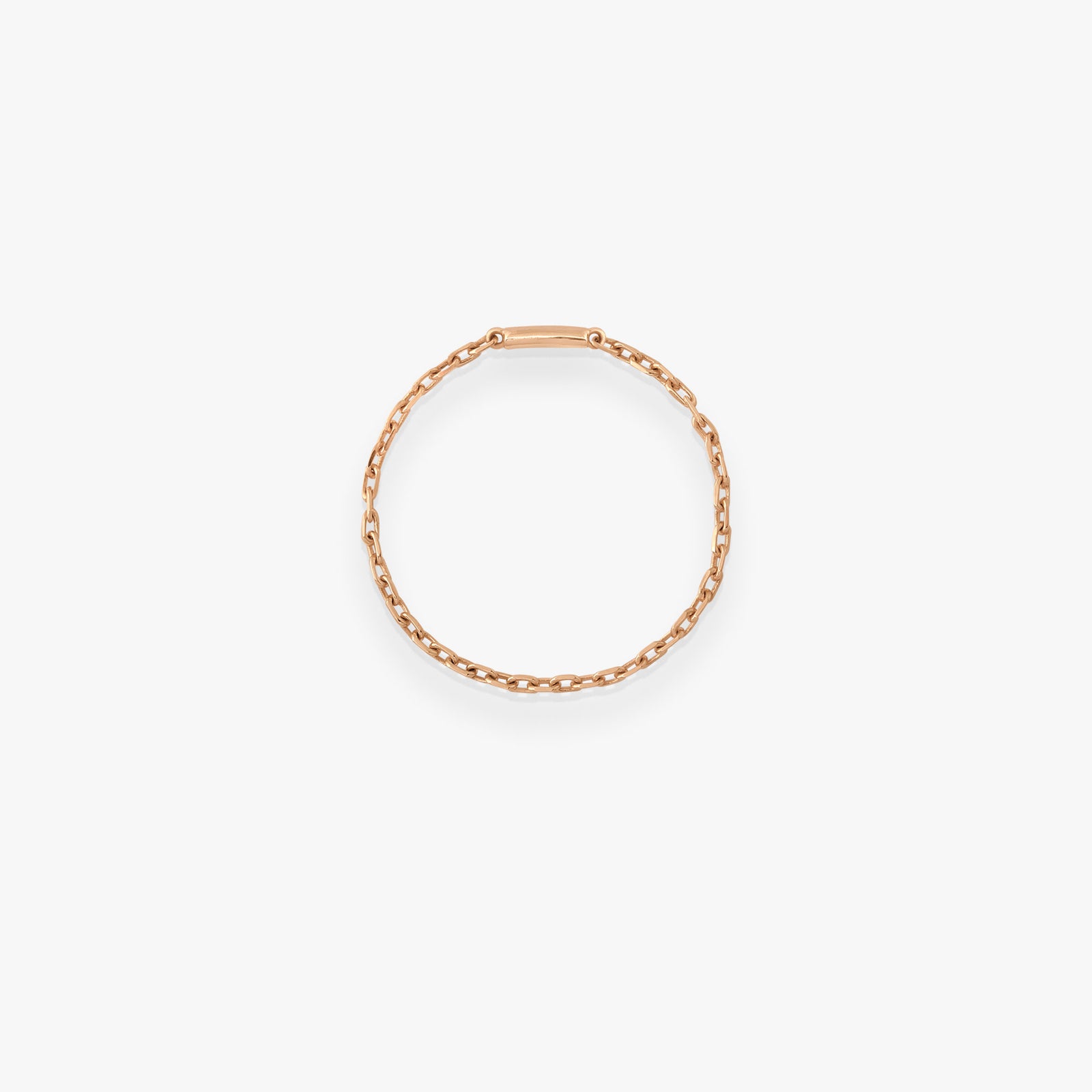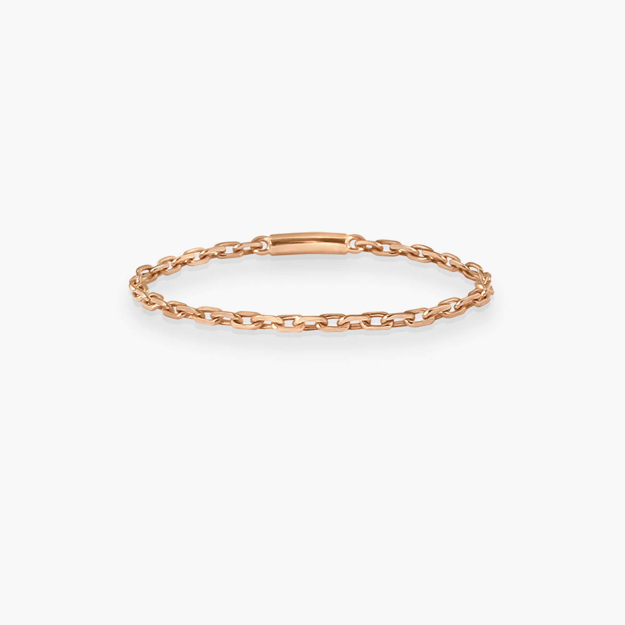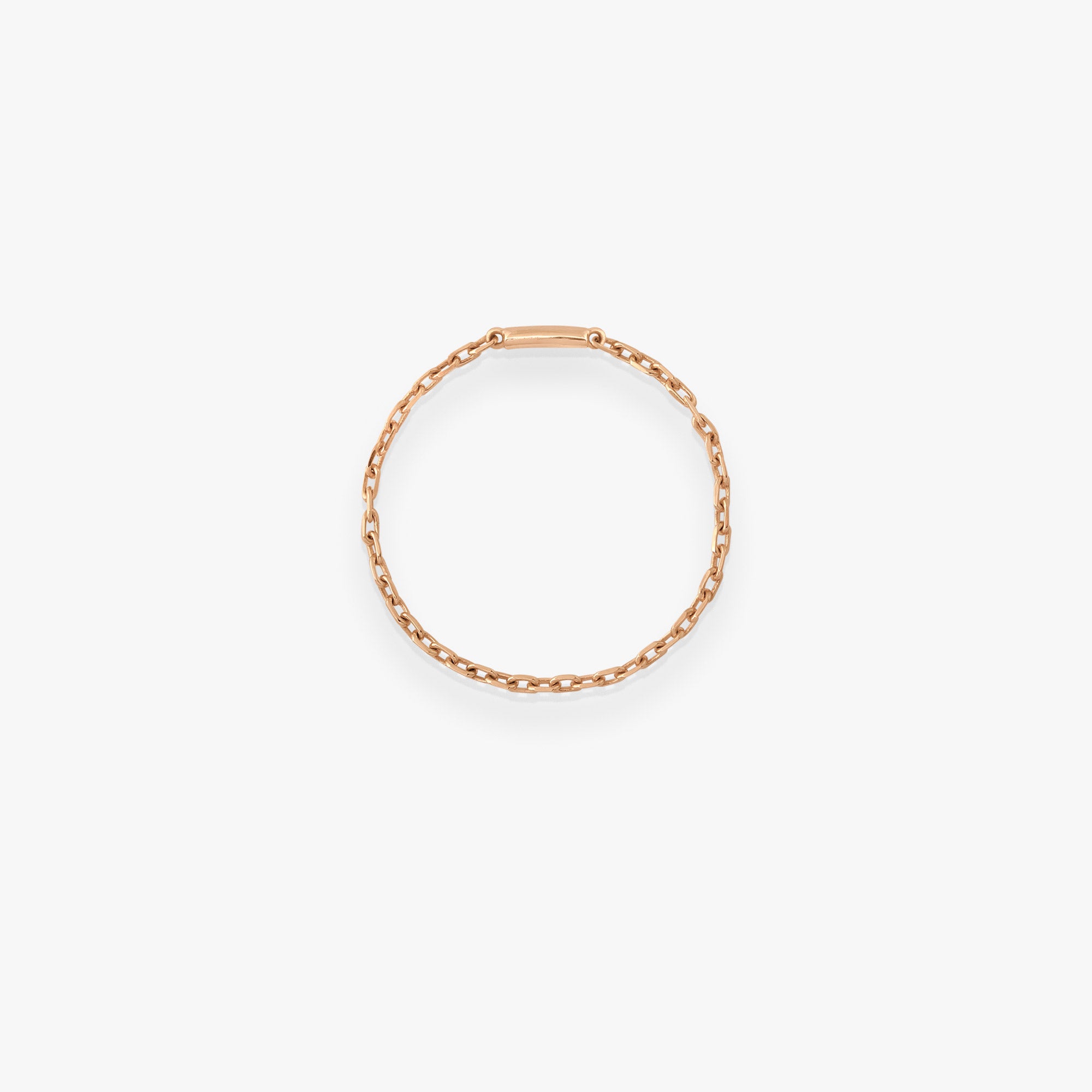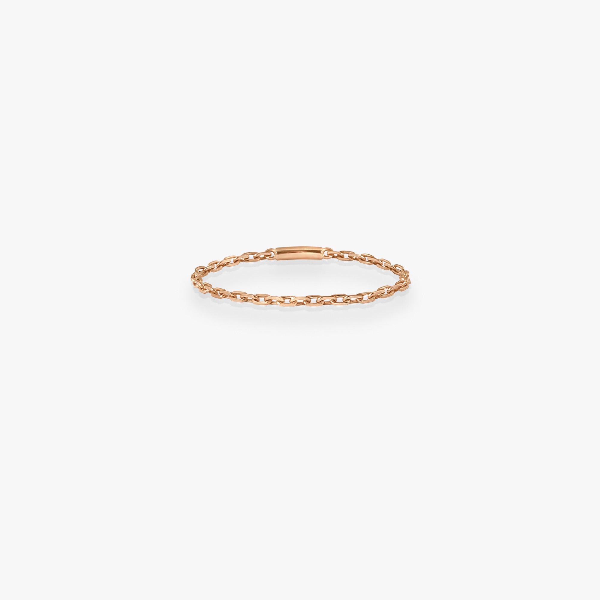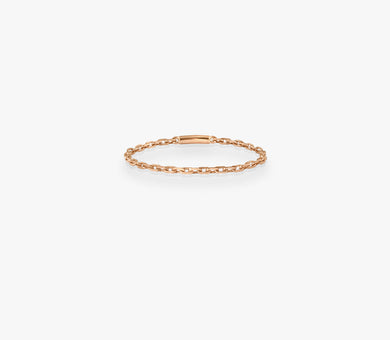 Or rose 18kLa bague chaîne Calamity Jane, en or rose 18k, séduit par sa simplicité et son allure contemporaine. Sa maille délicate épouse le doigt avec naturel, offrant un bijou facile à porter au quotidien, seul ou en accumulation.