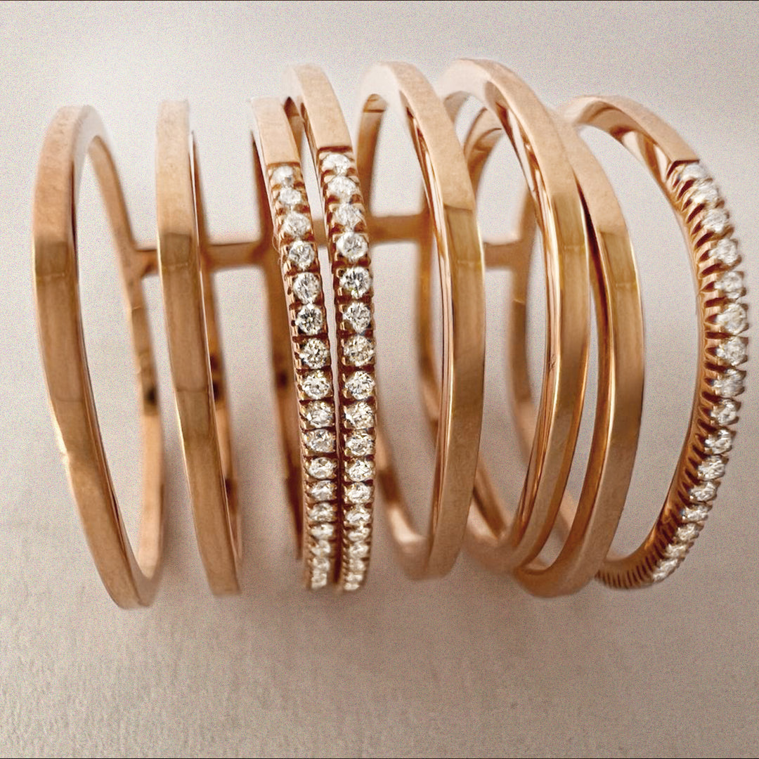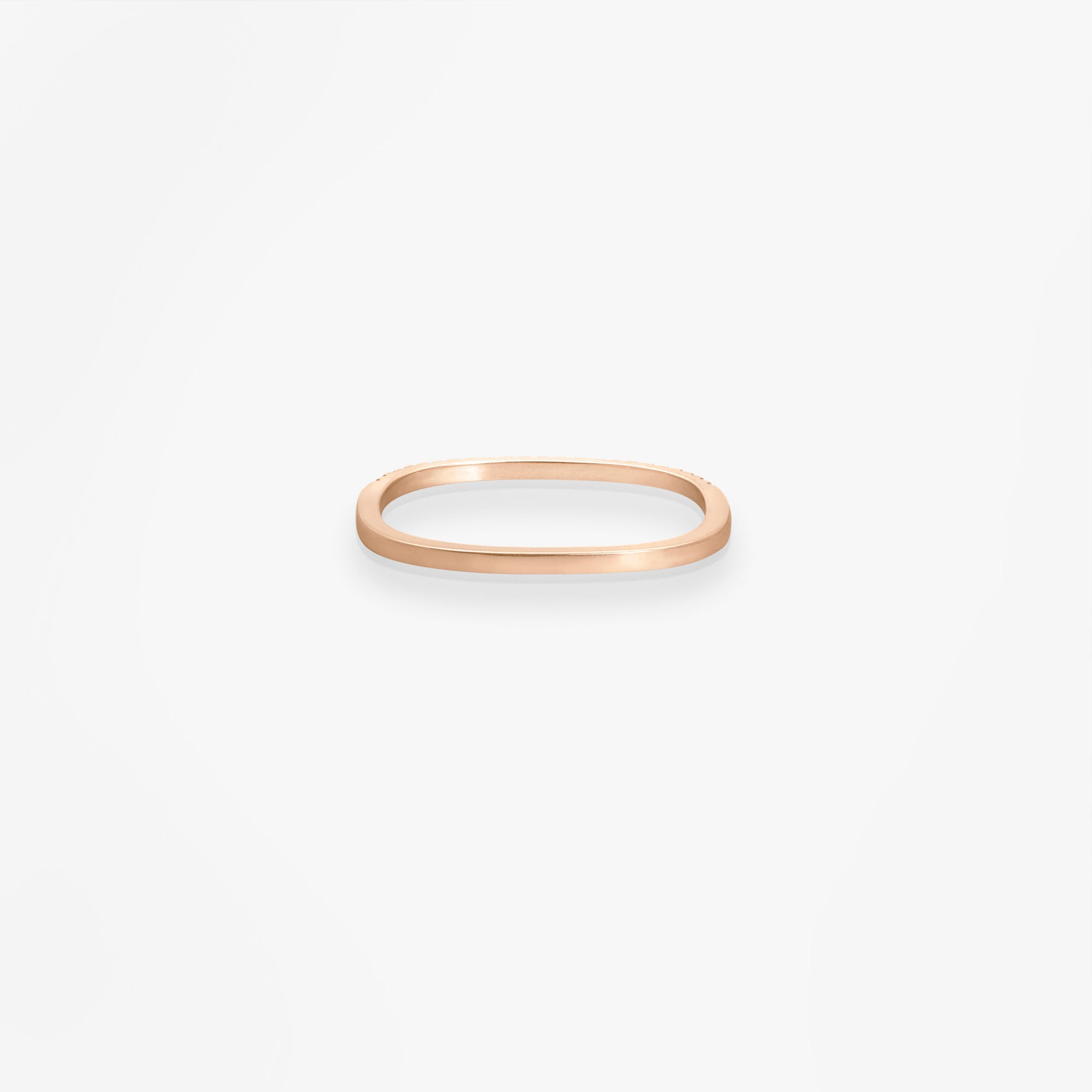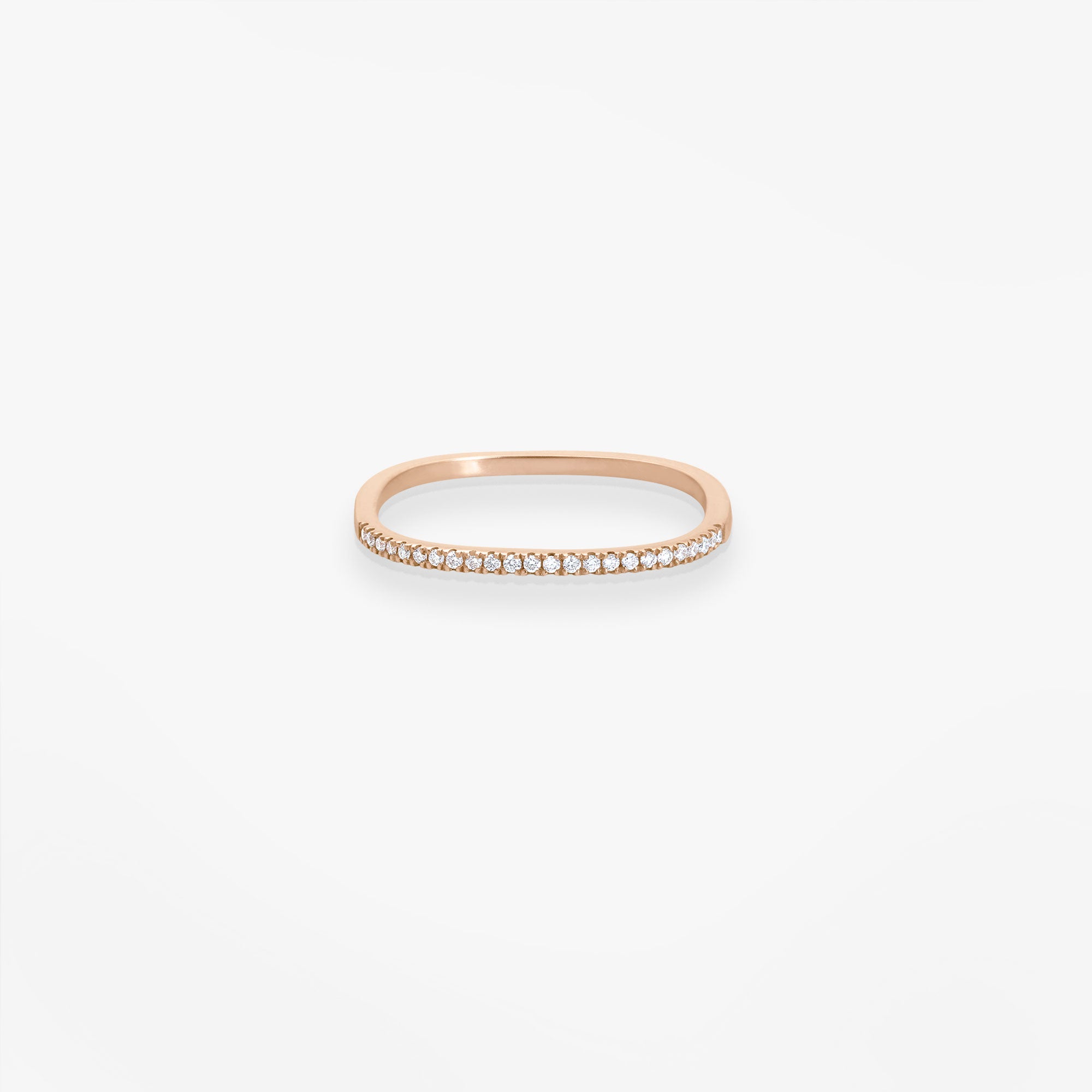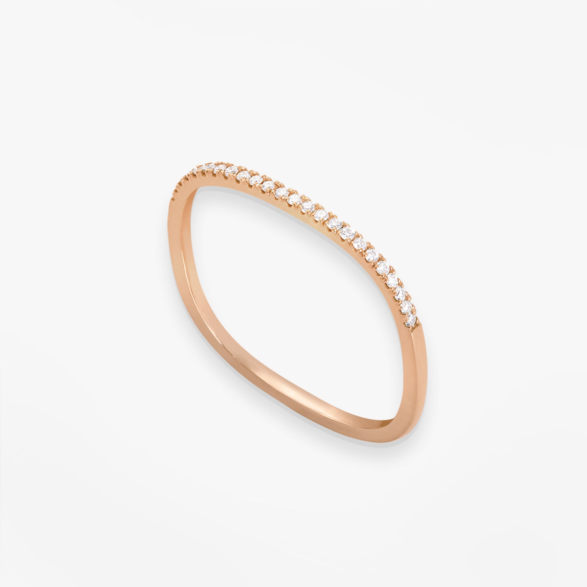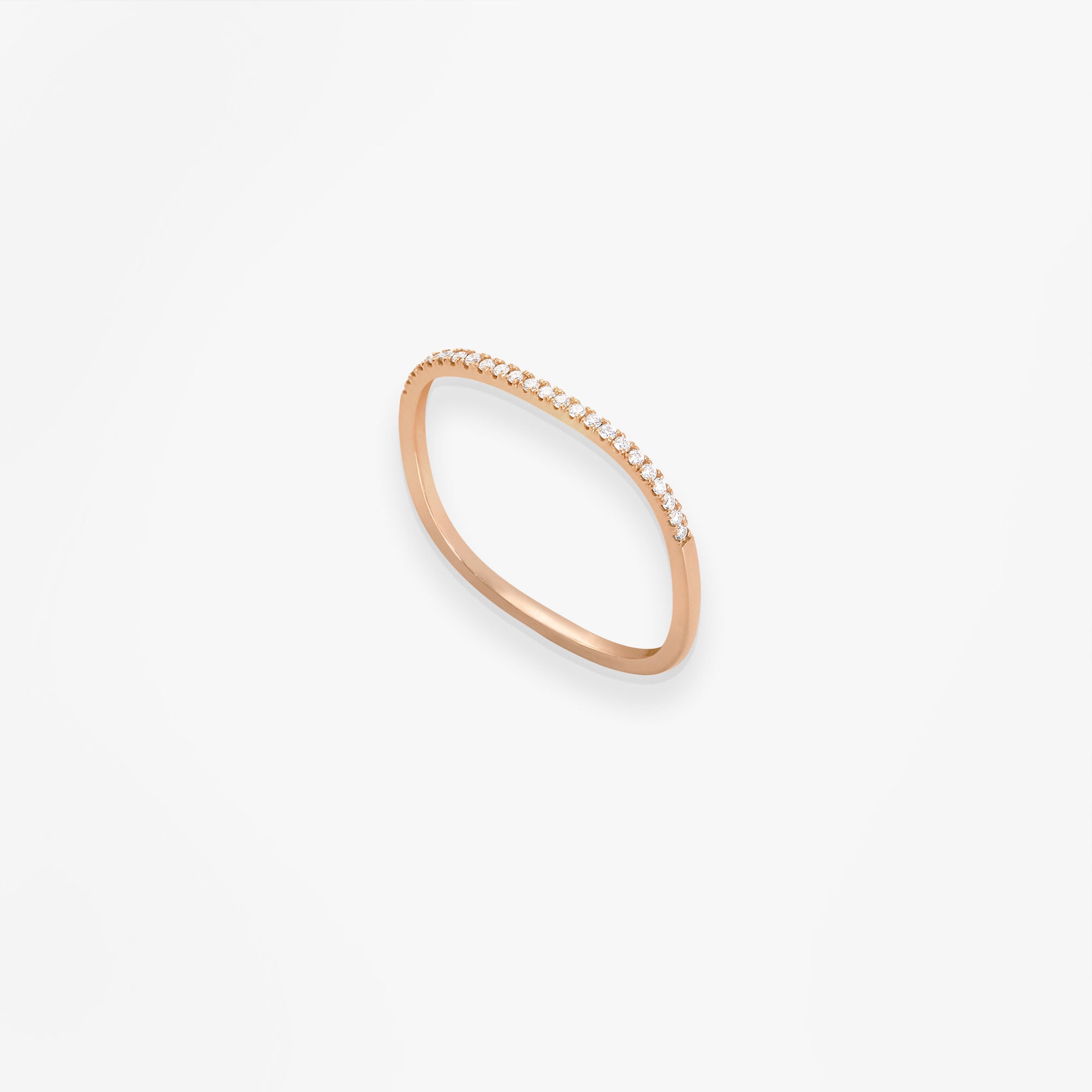 Or rose 18k et diamantsUne bague à la forme carrée galbée et semi pavée d'une ligne de diamants étincelants. Elle s'accumulera à la perfection avec d'autres bagues de la collection pour une attitude ultra tendance.