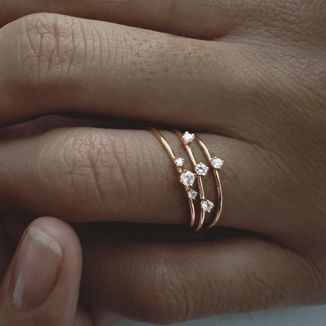 Or rose 18k et diamantsUn anneau d'or fin serti de trois délicats diamants. Une bague intemporelle qui célèbre l'élégance de la simplicité. Un must have !