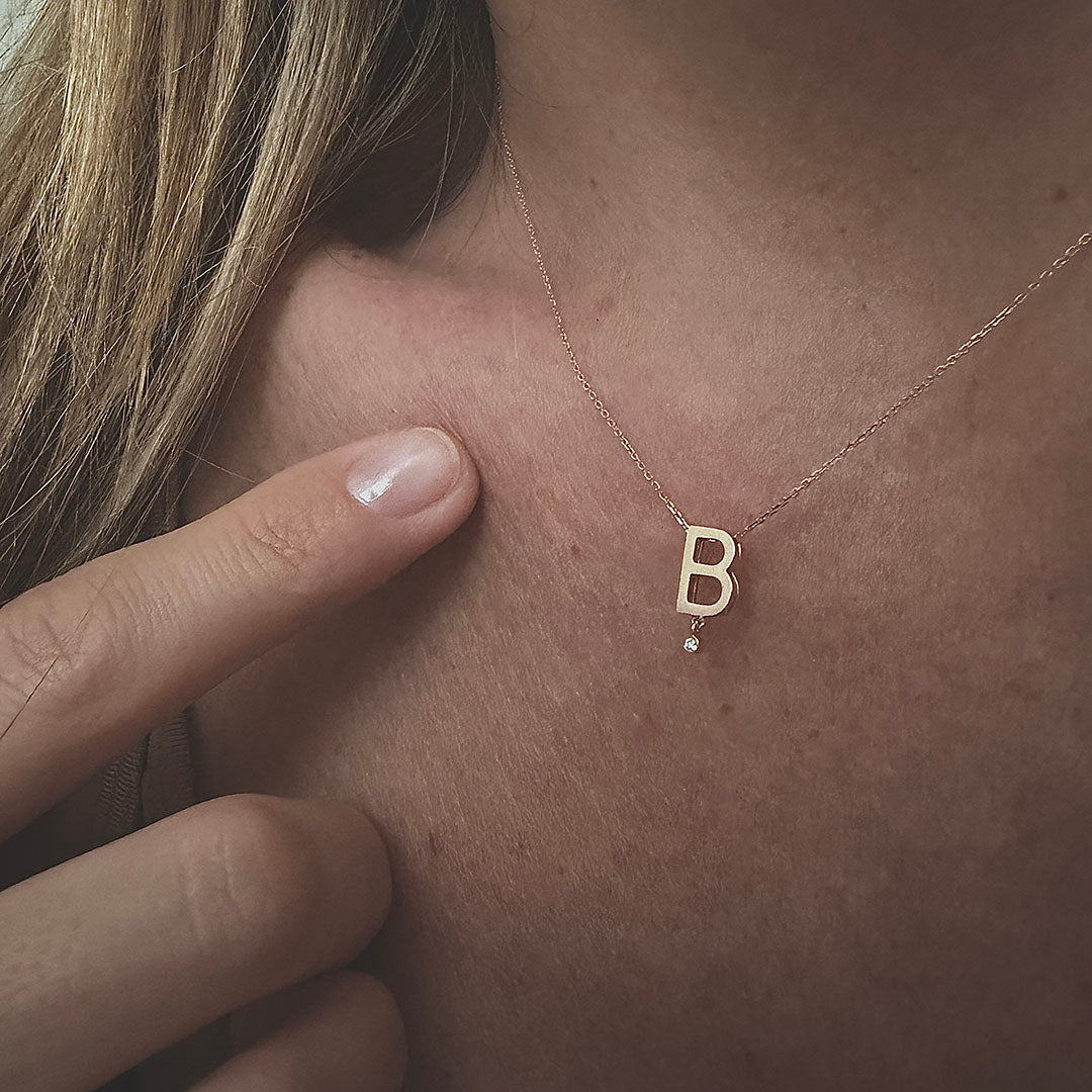 Or rose 18k et diamantCe collier à porter au quotidien est composé d’une mini lettre qui glisse librement le long d’une fine chaîne diamantée. Choisissez votre initiale et vous aurez un cadeau parfait.