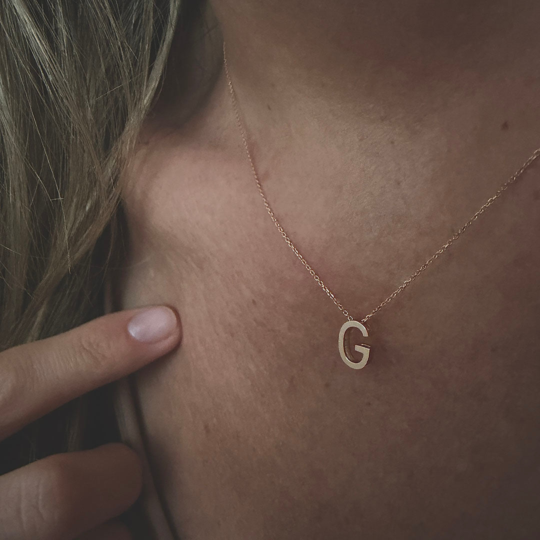 Or rose 18kCe collier à porter au quotidien est composé d’une mini lettre qui glisse librement le long d’une fine chaîne diamantée. Choisissez votre initiale et vous aurez un cadeau parfait.