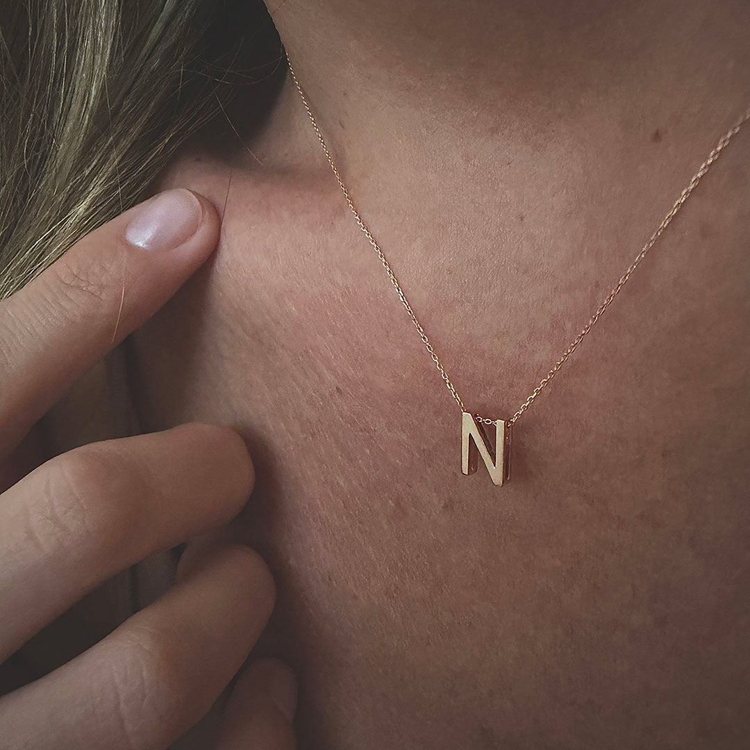 Or rose 18kCe collier à porter au quotidien est composé d’une mini lettre qui glisse librement le long d’une fine chaîne diamantée. Choisissez votre initiale et vous aurez un cadeau parfait.