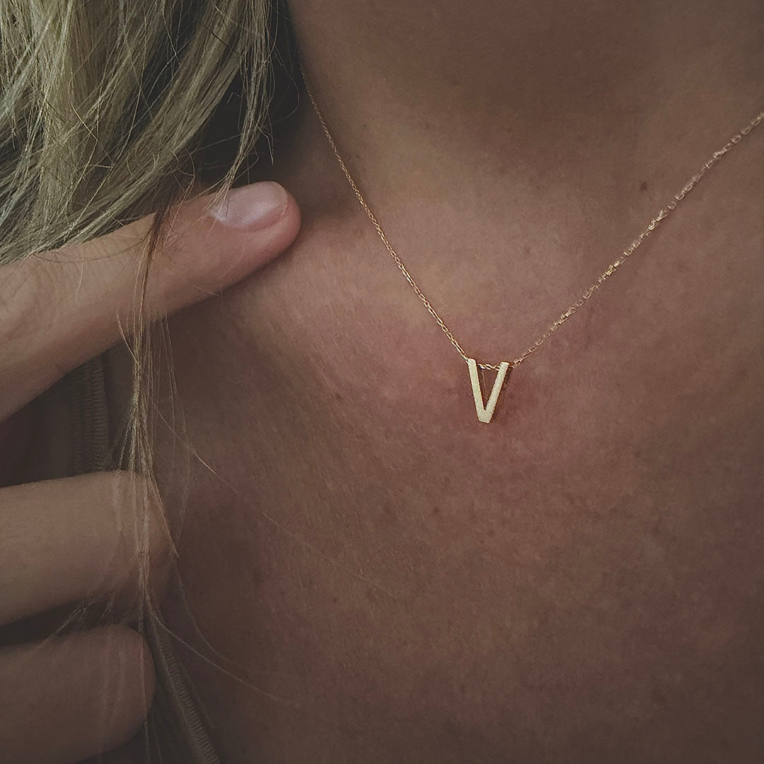 Or rose 18kCe collier à porter au quotidien est composé d’une mini lettre qui glisse librement le long d’une fine chaîne diamantée. Choisissez votre initiale et vous aurez un cadeau parfait.
