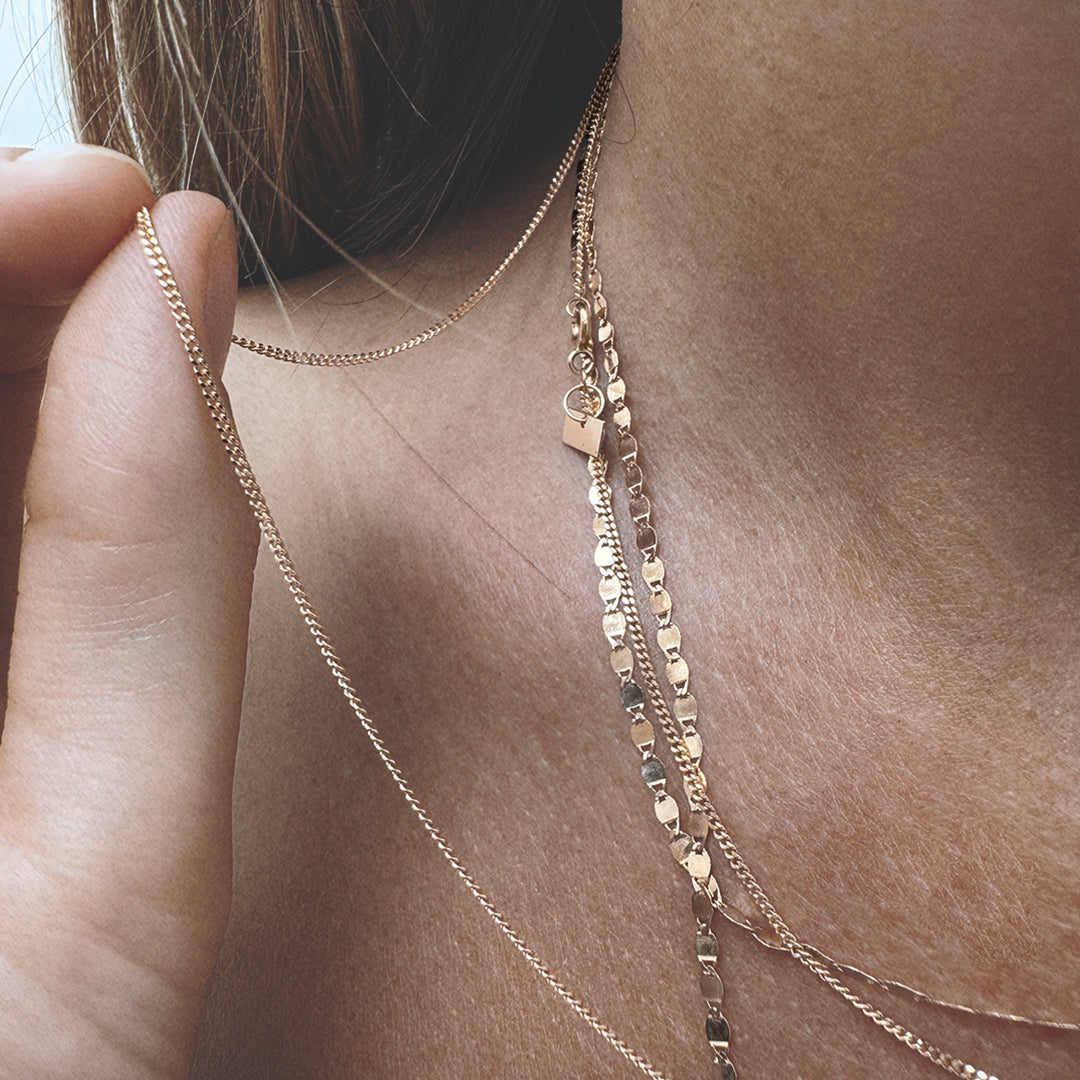 Or rose 18k - 42cmCette chaîne gourmette diamantée en or rose 18k est une ligne lumineuse qui capte la lumière. Son design plat, d'une longueur de 42 cm ou 50 cm, épouse le cou avec élégance, offrant une touche lumineuse à chaque mouvement.