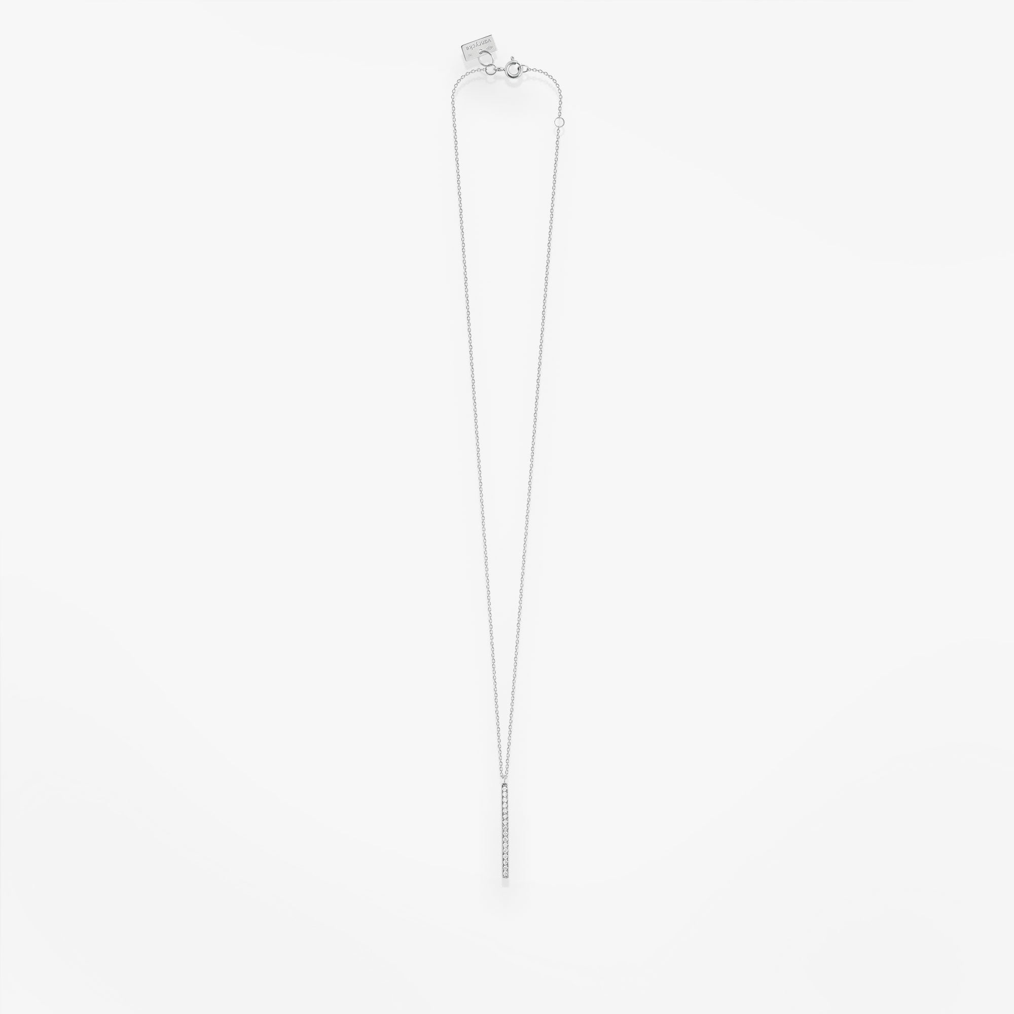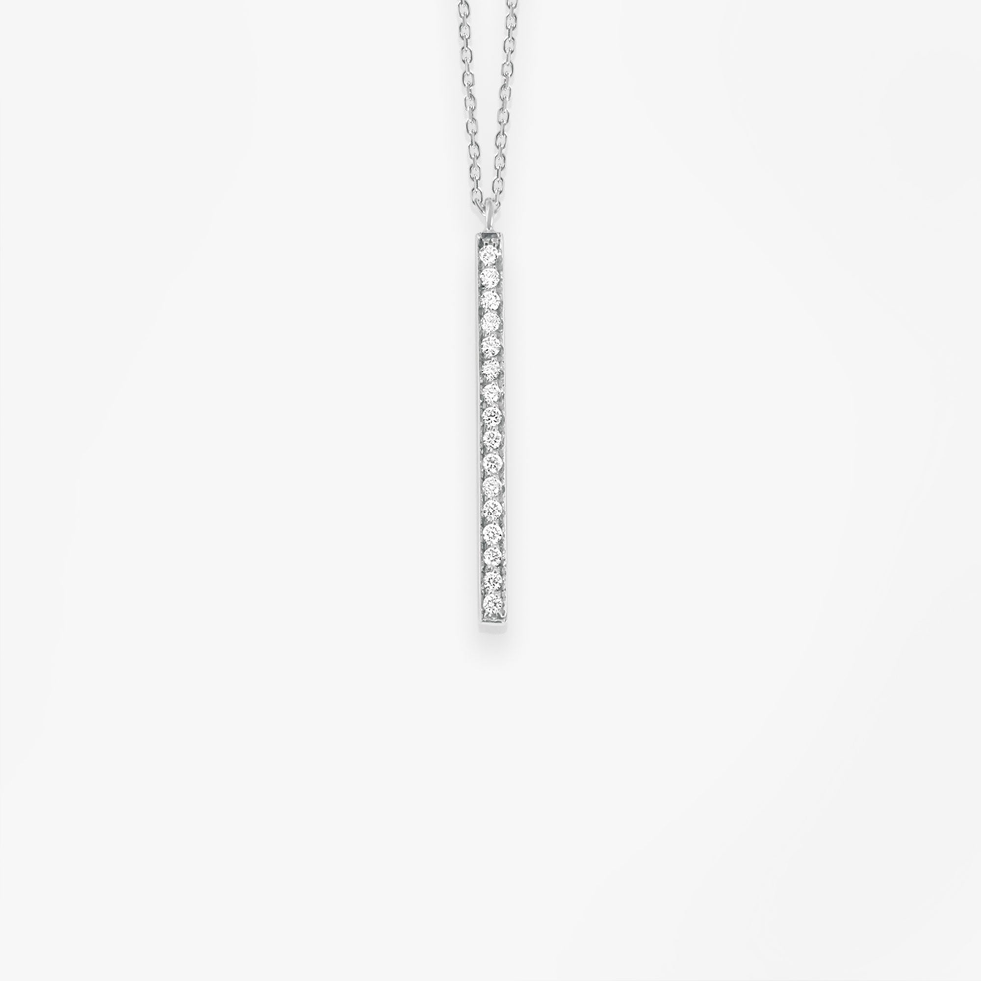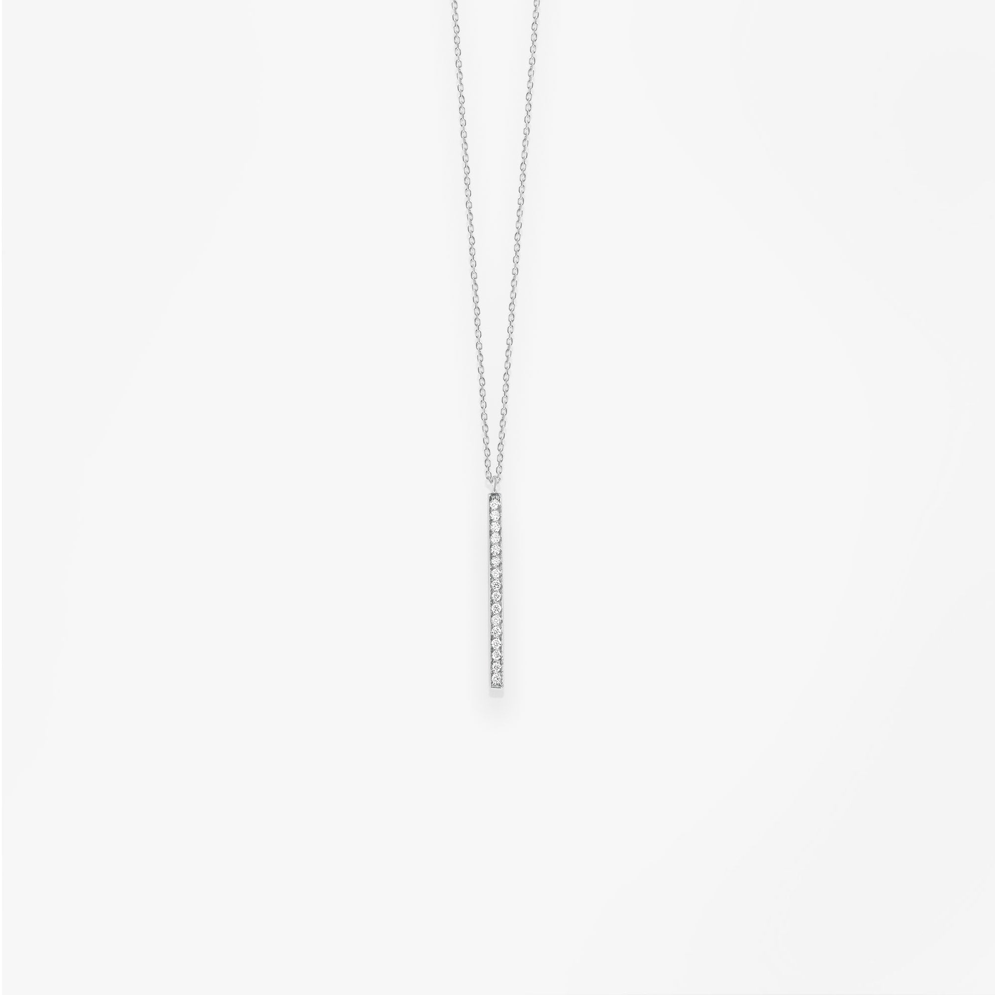 Or blanc 18k et diamantsAussi élégant avec un jean qu'une robe de soirée ! Ce collier, réalisé en or 18k, est orné d'une ligne verticale de diamants scintillants. Il s'associera particulièrement bien à un autre collier de la même collection.