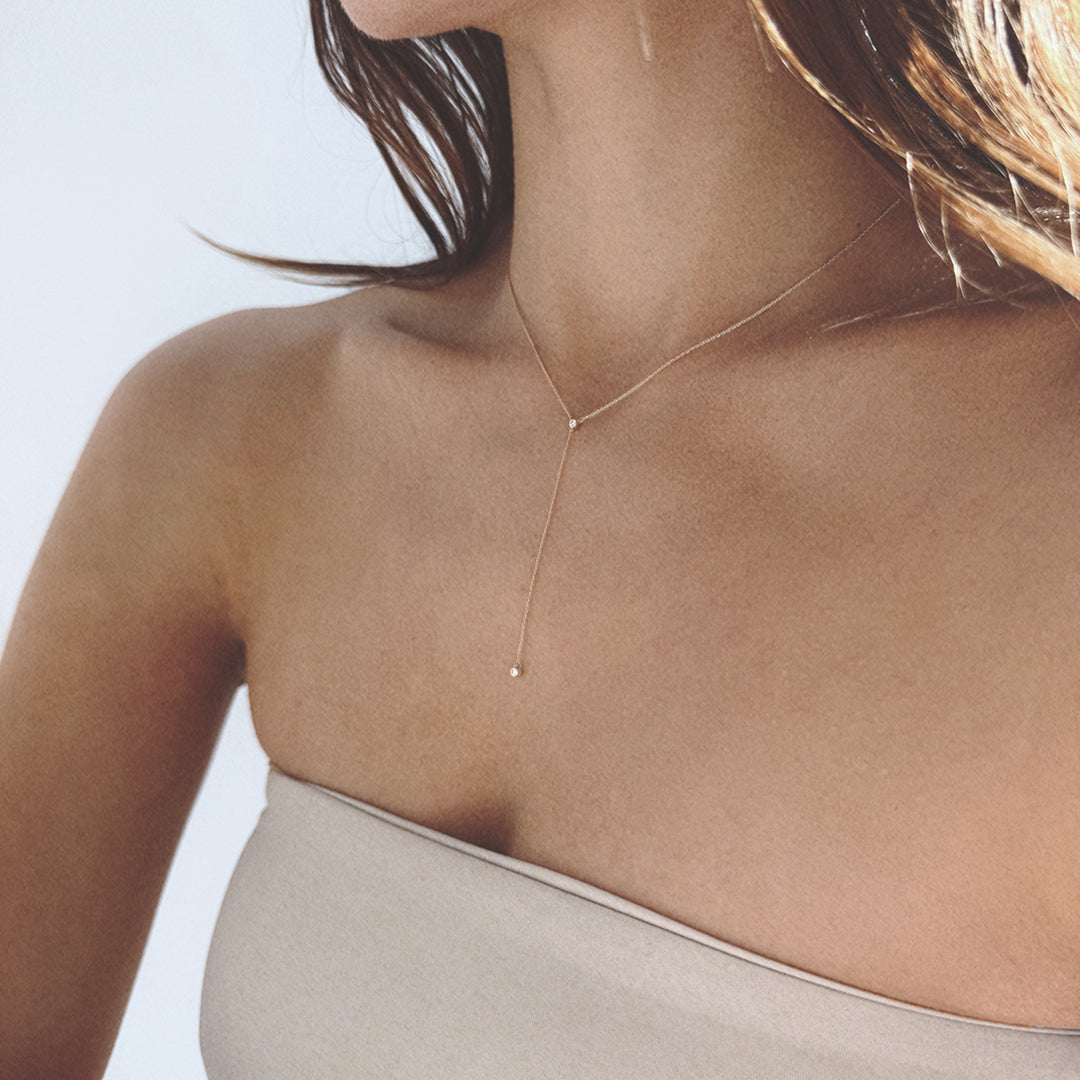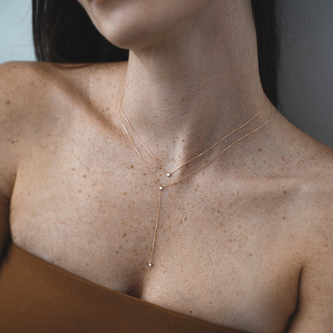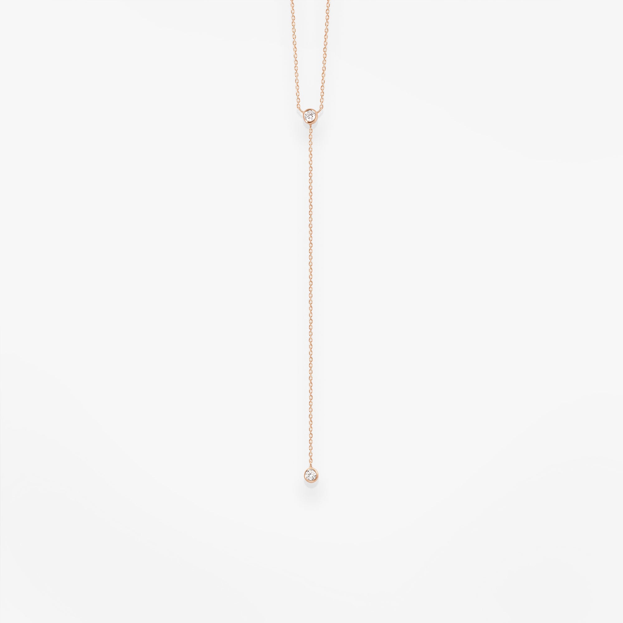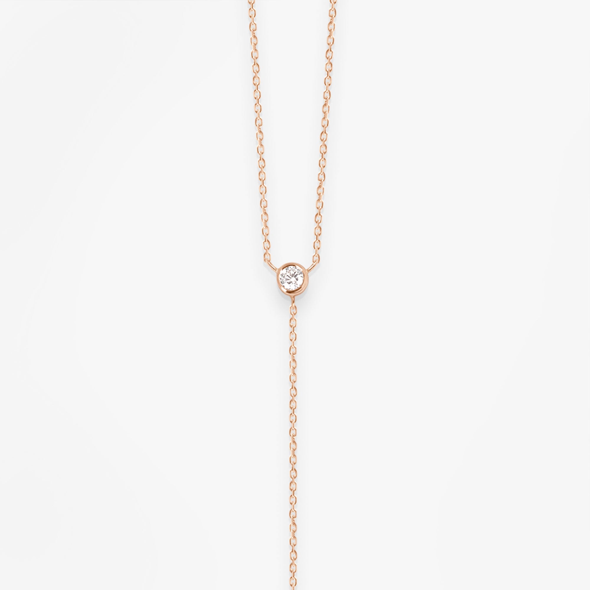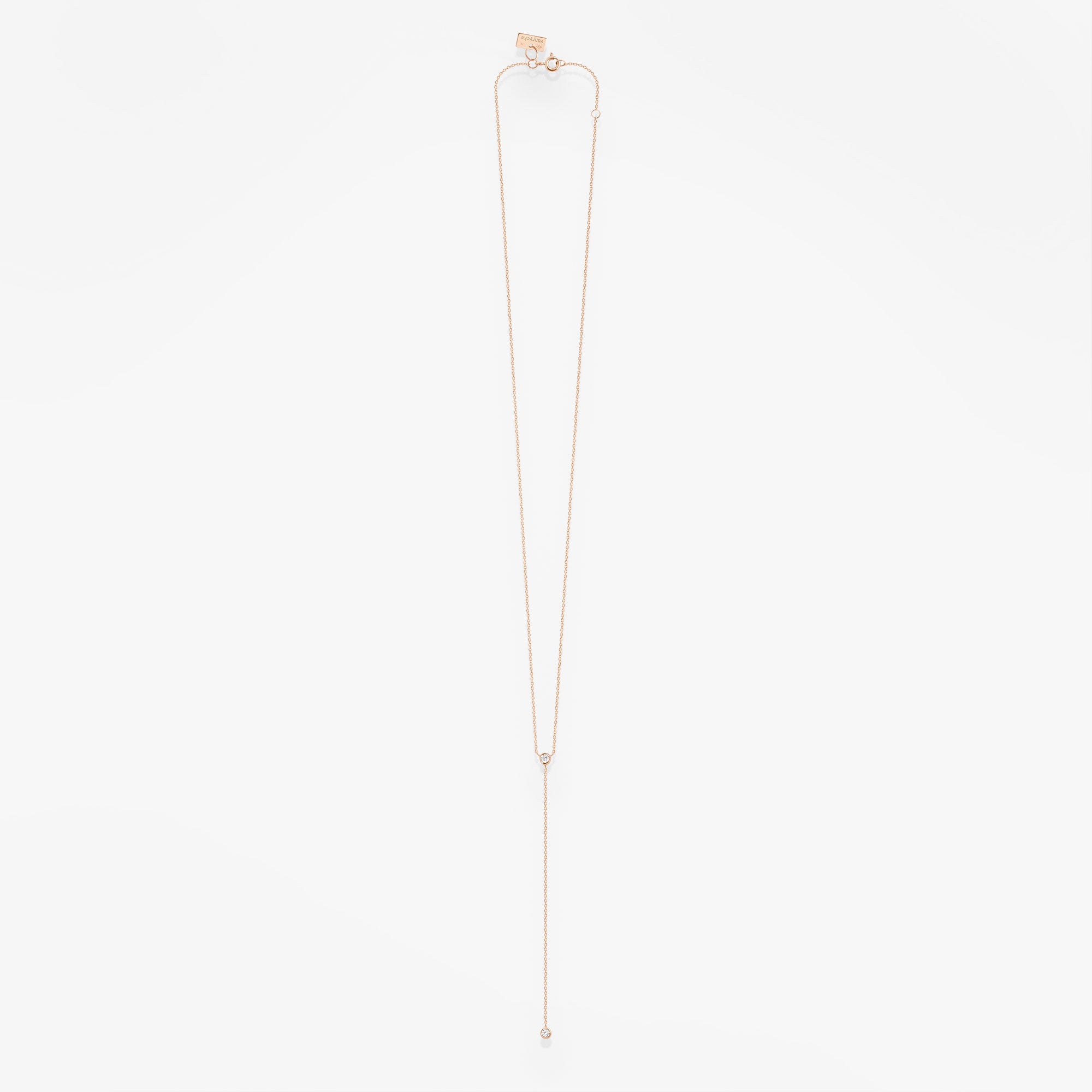 Or rose 18k et diamantsUn collier iconique revisité. Un diamant serti sur une fine chaîne en or rose 18k sublimée par un second diamant lumineux.