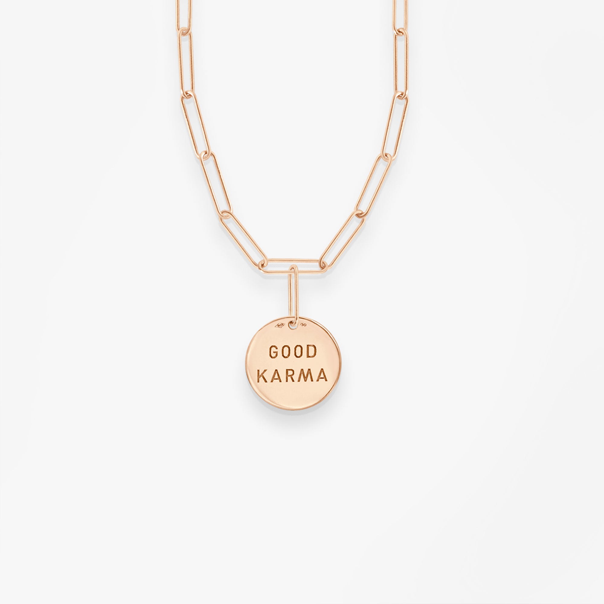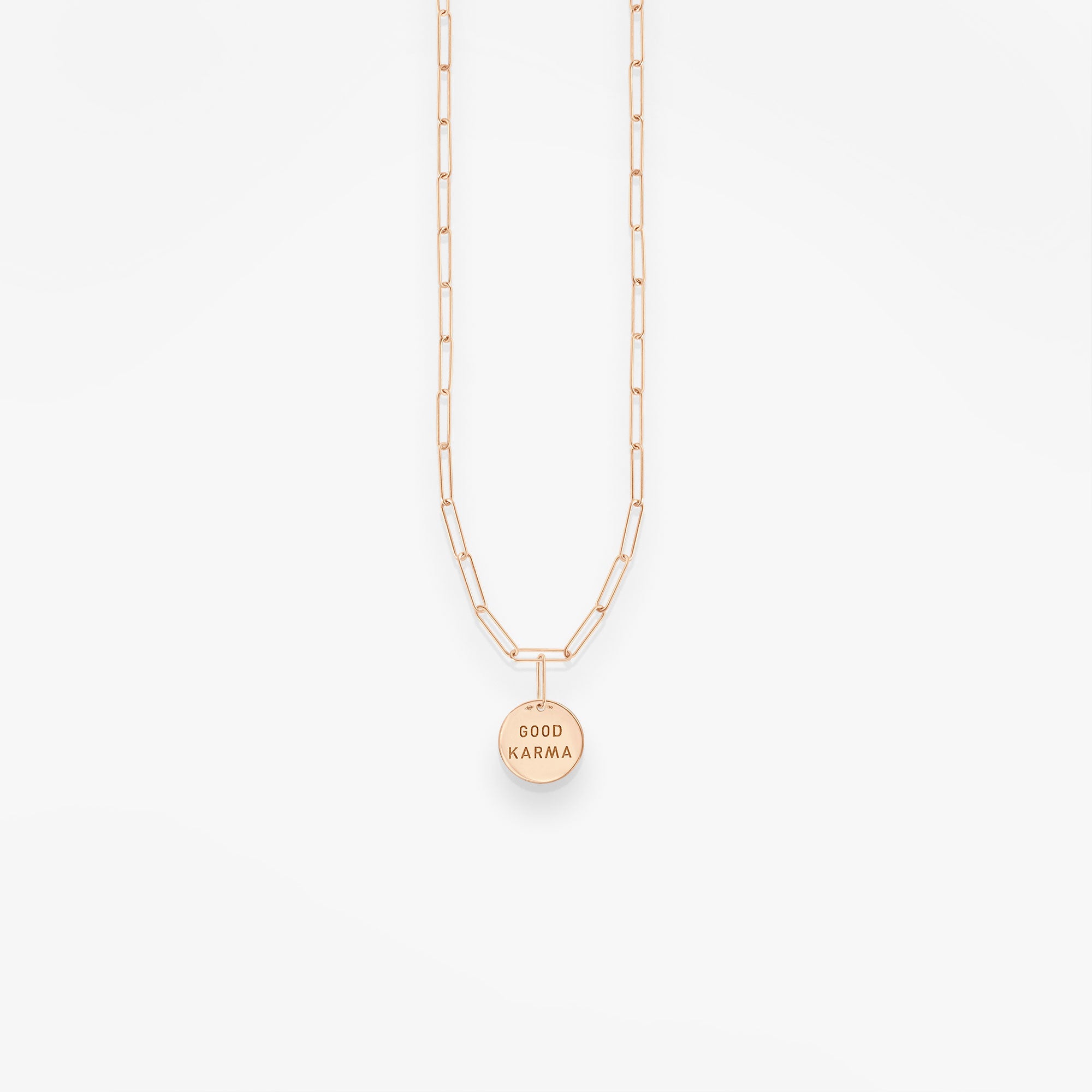 Or rose 18kShaman est une collection de médailles bienfaisantes gravées de mots magiques qui diffusent leur aura protectrice à même la peau.