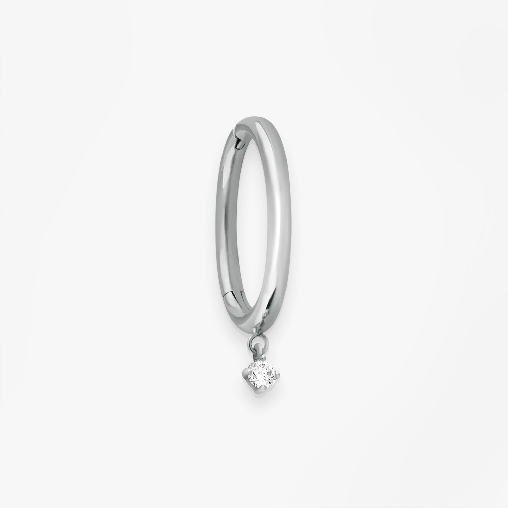 Or blanc 18k et diamant taille MUne mini créole toute en or ornée d'un diamant éclatant qui oscillera élégamment au gré de vos pas. Un must have à mixer et mélanger avec d'autres modèles pour être au cœur de la tendance.
