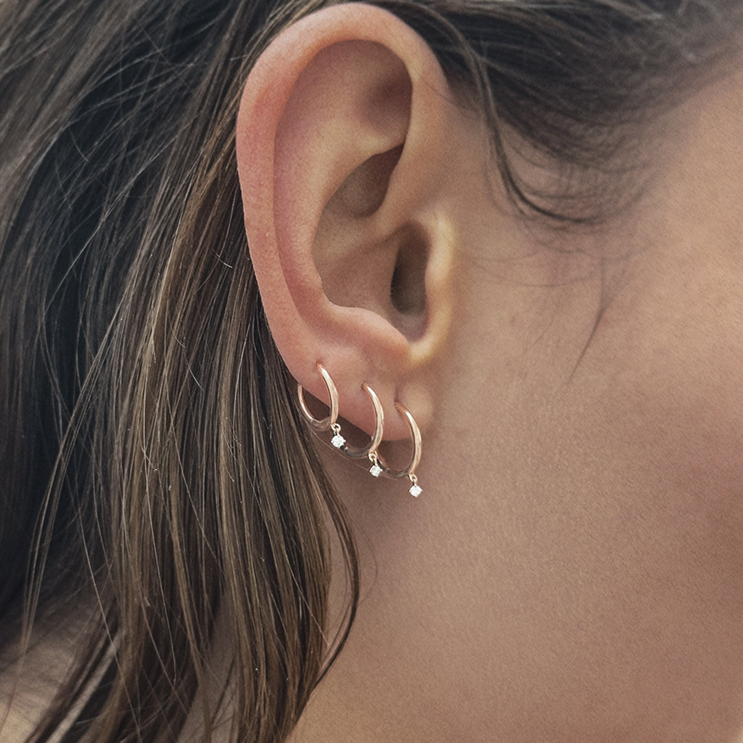 Or rose 18k et diamant taille SUne mini créole toute en or ornée d'un diamant éclatant qui oscillera élégamment au gré de vos pas. Un must have à mixer et mélanger avec d'autres modèles pour être au cœur de la tendance.