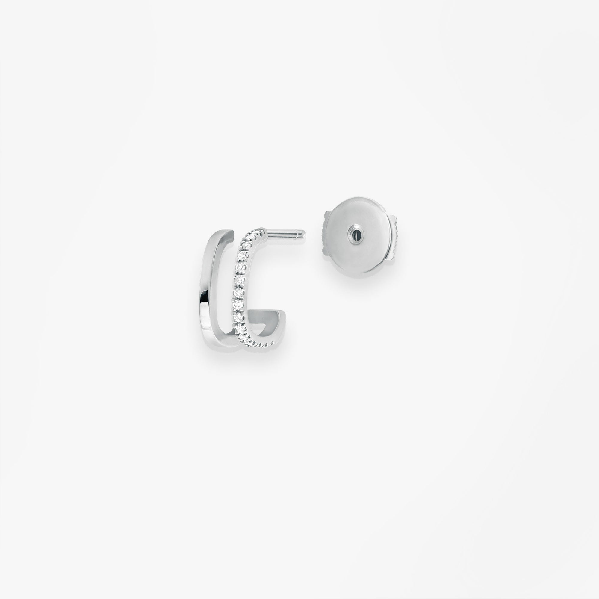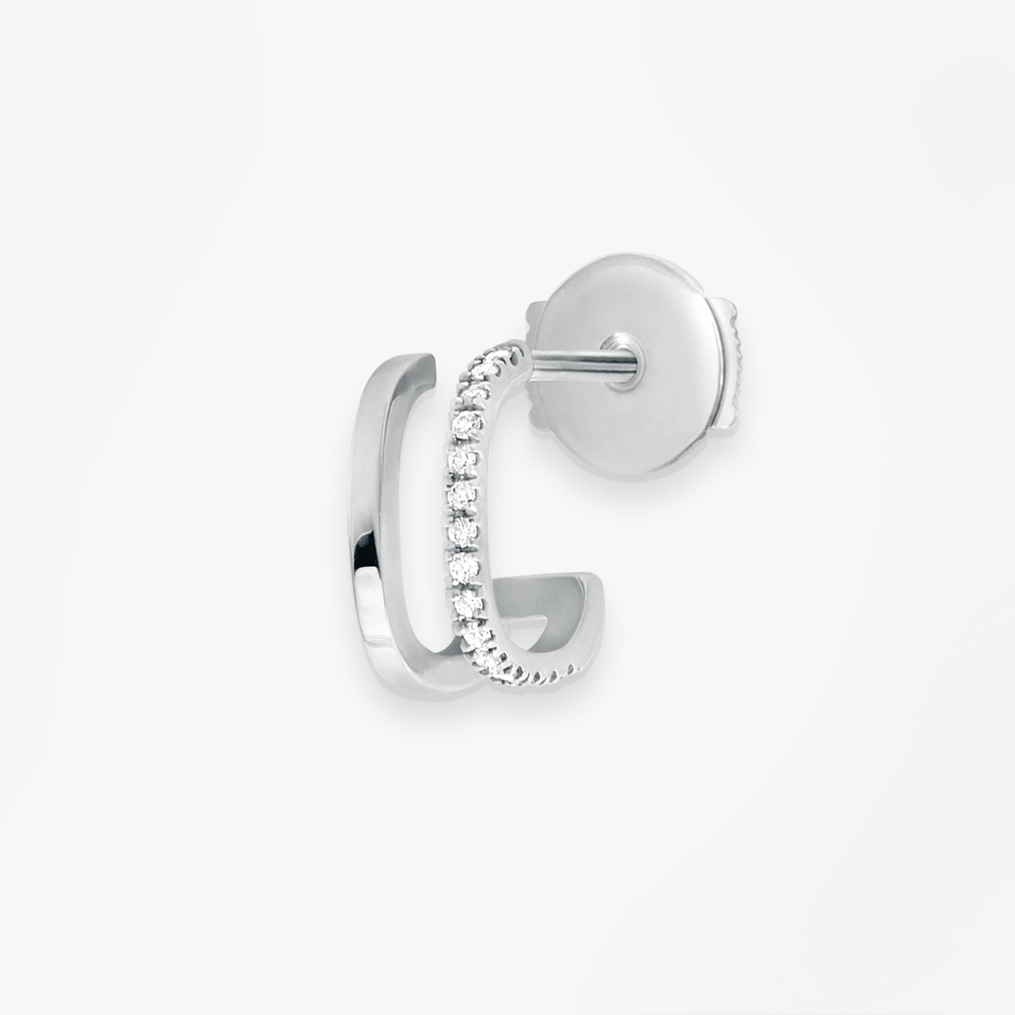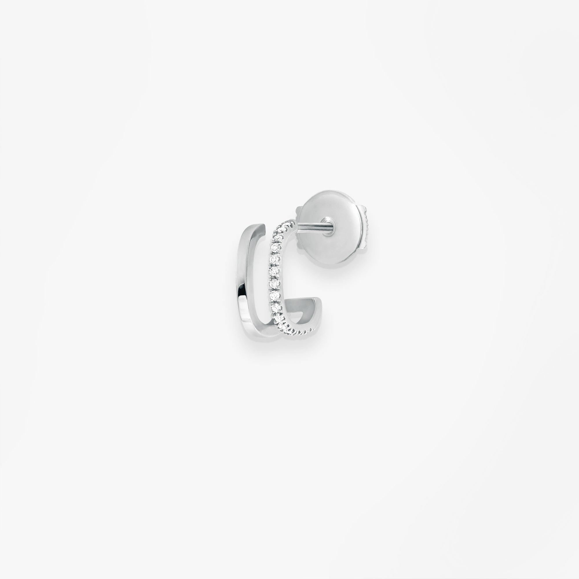 Or blanc 18k et diamants oreille droiteDu renouveau dans la famille des créoles avec cet effet double créole sertis de diamants qui vient épouser à la perfection le lobe de l'oreille. Un must have à mixer et mélanger avec d'autres modèles pour être au cœur de la tendance.