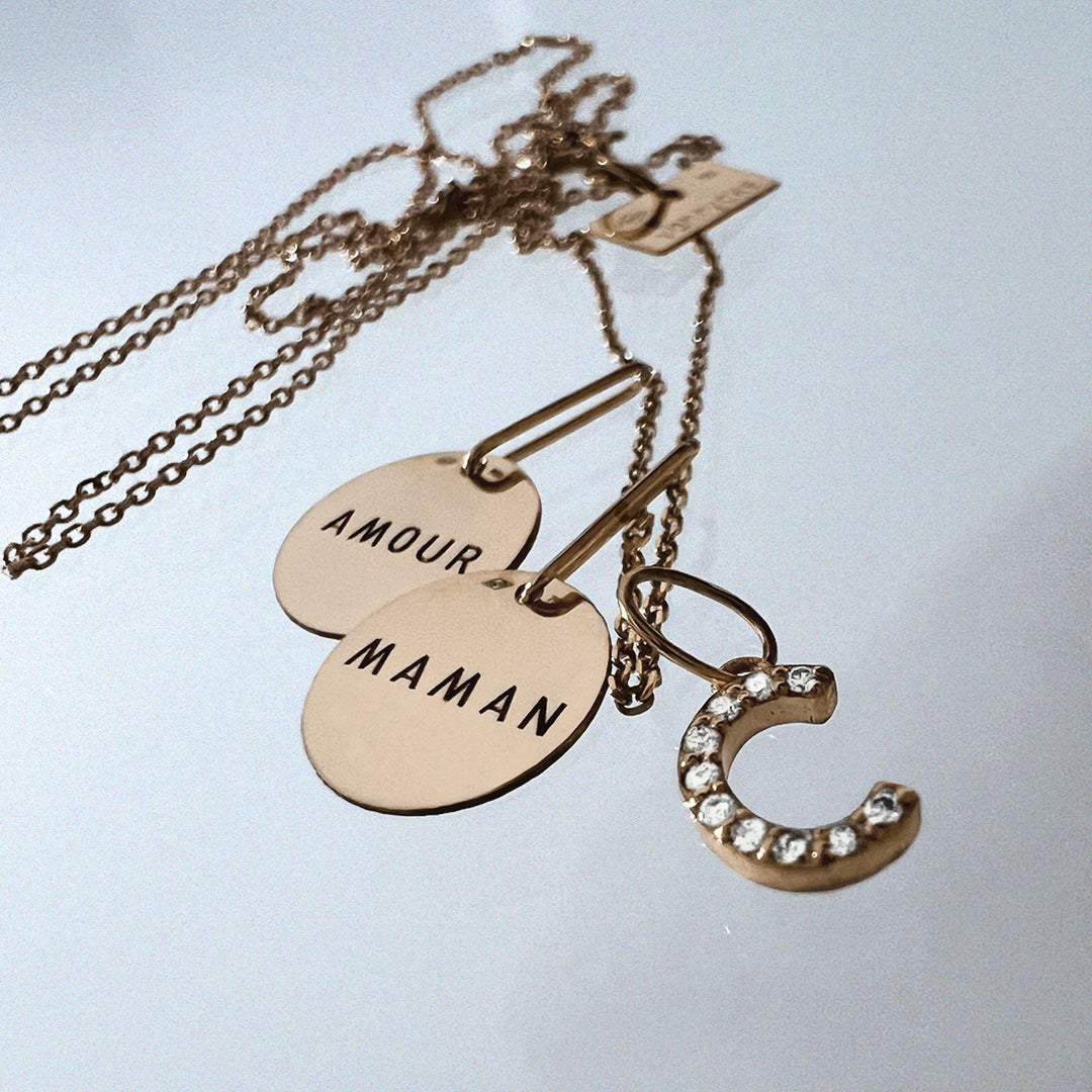 Cette petite médaille en or rose 18k est une douce déclaration pour toutes les mamans.