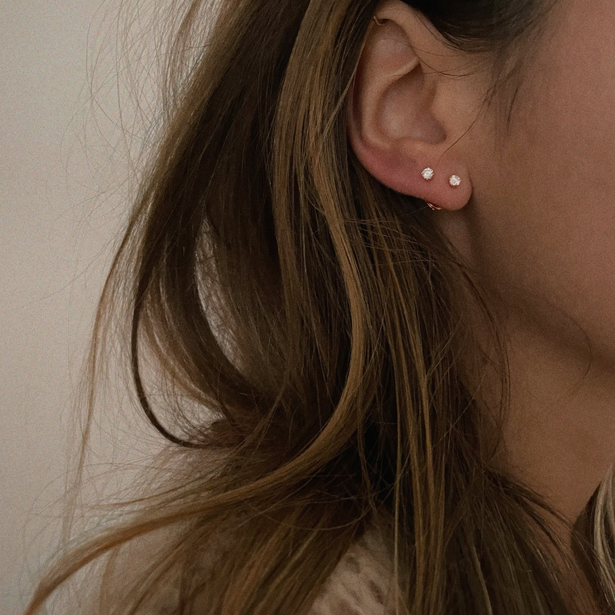 Une puce d'oreille raffinée et féminine à porter au quotidien. un diamant de 0,11 carats en serti 4 griffes dont l'éclat est révélé par un socle ajouré.